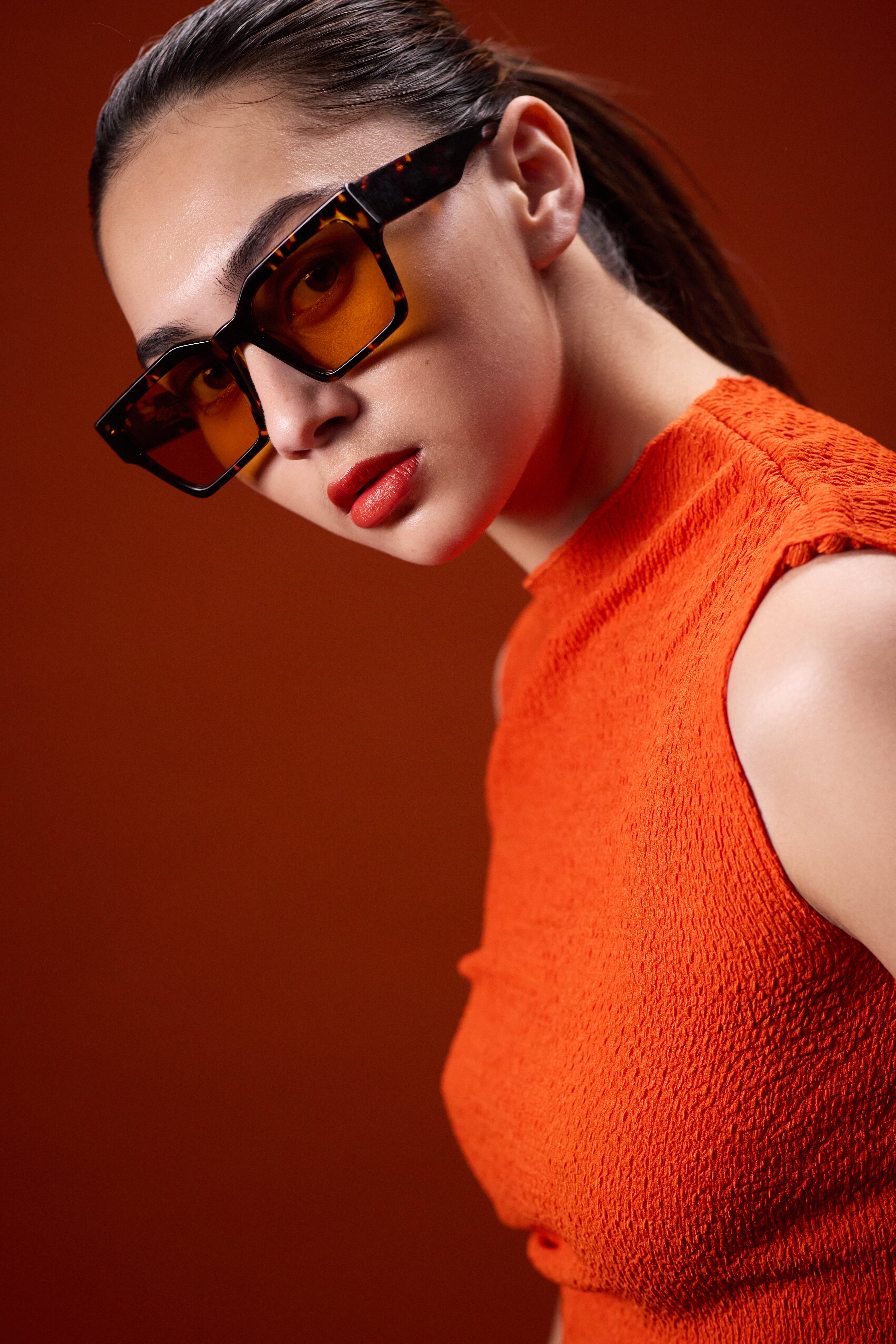 A rich brown tortoiseshell pattern with warm tones that offer a classic yet modern aesthetic. Ideal for those who appreciate vintage-inspired elegance. Comes in brown gradient and orange monochrome lenses.