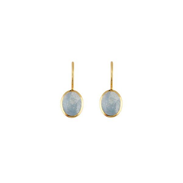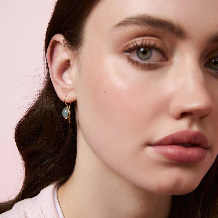 The Glaze Earrings by Bianc feature an oval cut Milky Aquamarine gemstone, set in 18k gold plated sterling silver. The soft blue tones add a hint of calm sophistication, making these earrings a perfect everyday staple or subtle accent for special occasions. Lightweight and easy to wear, they bring a refined touch to any outfit.