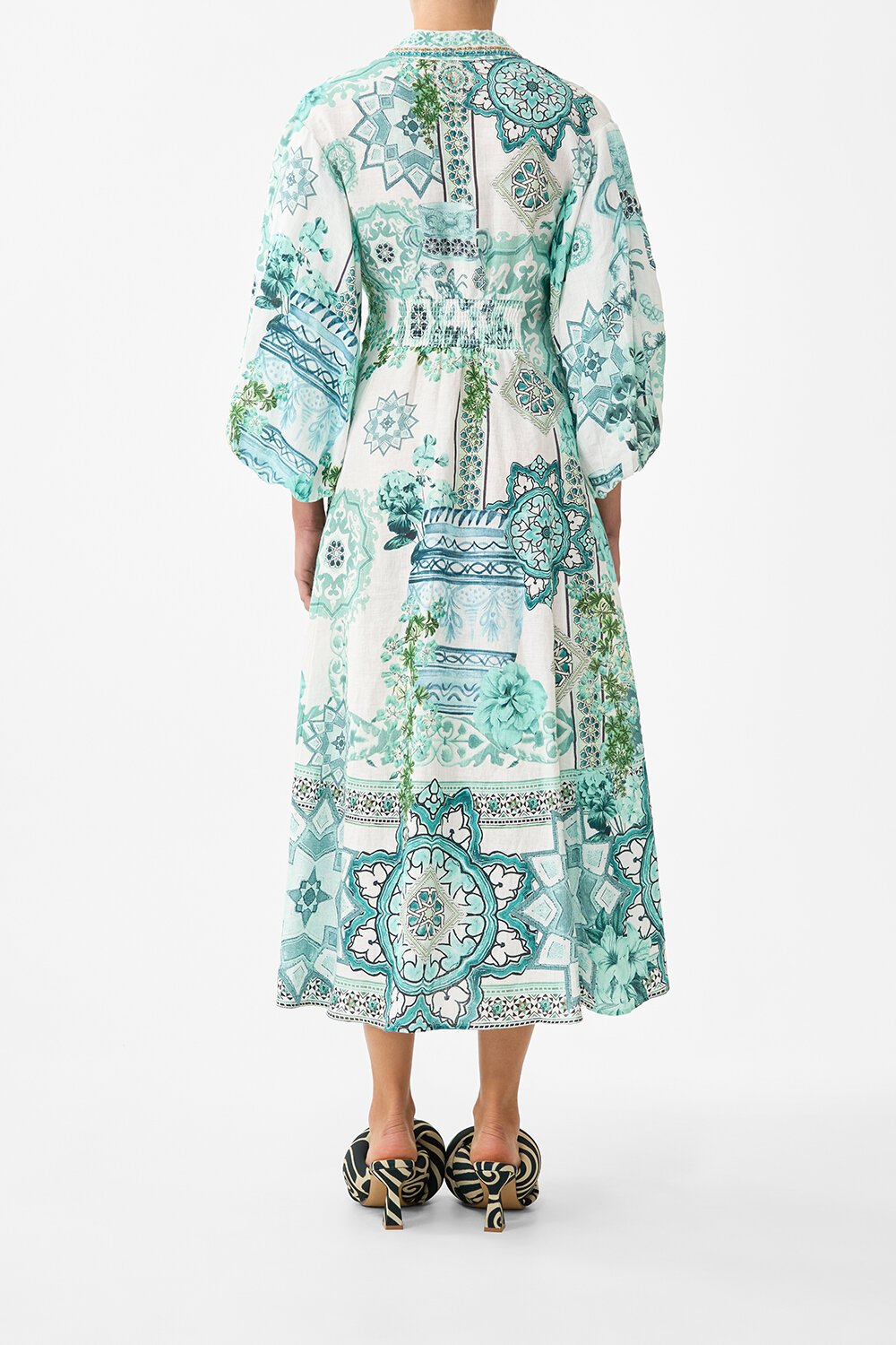 The Balearic BebÈ Waist Tie Shirt Dress With Bubble Sleeve is a handcrafted silhouette designed by our in-house artisans. Conceived in an exclusive limited edition print, this relaxed linen shirt dress features a button front.