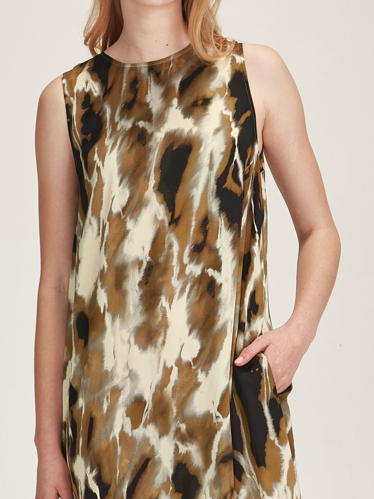 The limited-edition Amore Print is reminiscent of the pattern of garden stones found in Japanese temples. It's been crafted in a sustainably sourced viscose satin. The Dakota provides a relaxed look with its fit & flare shape and sleeveless style.