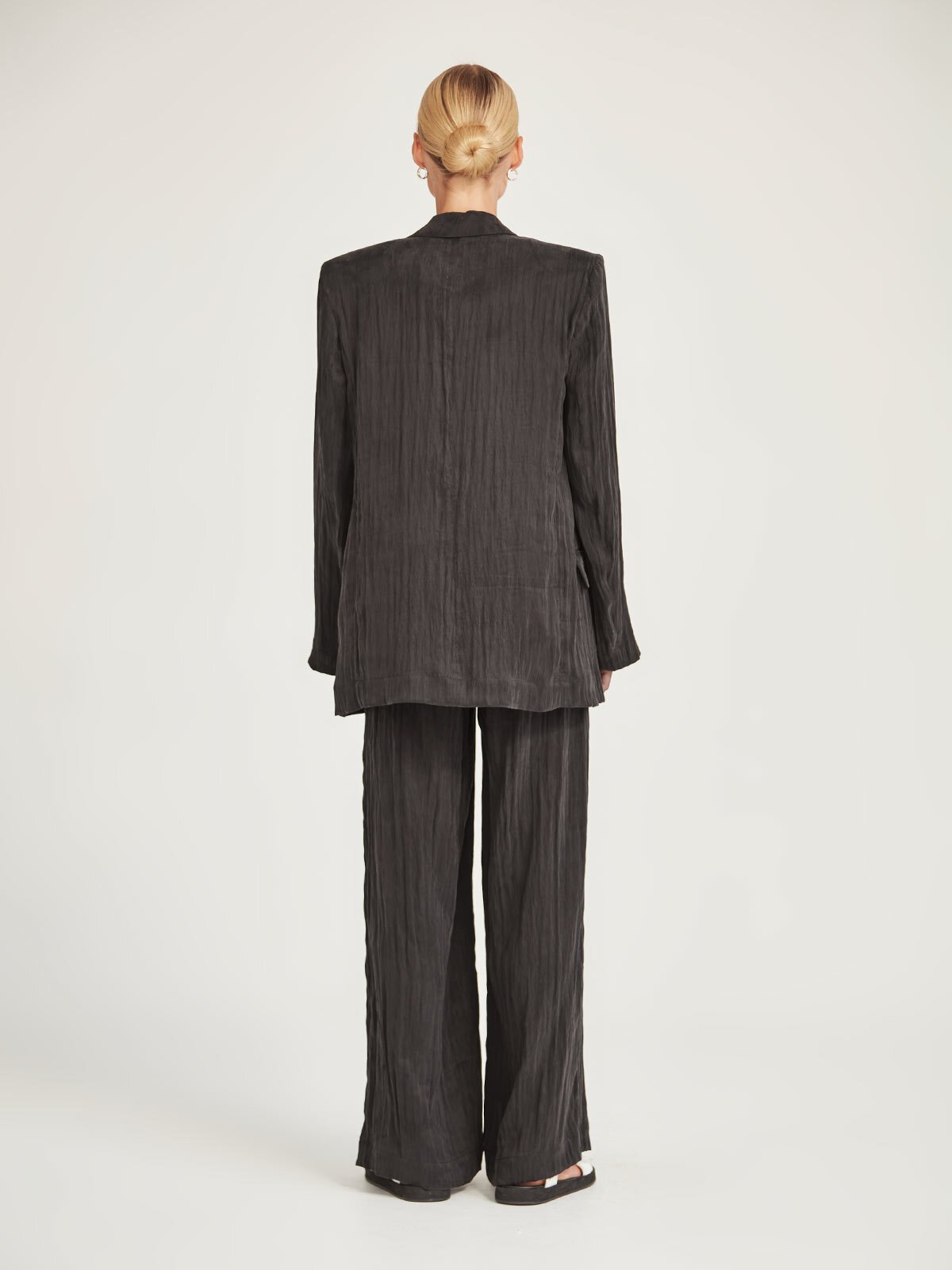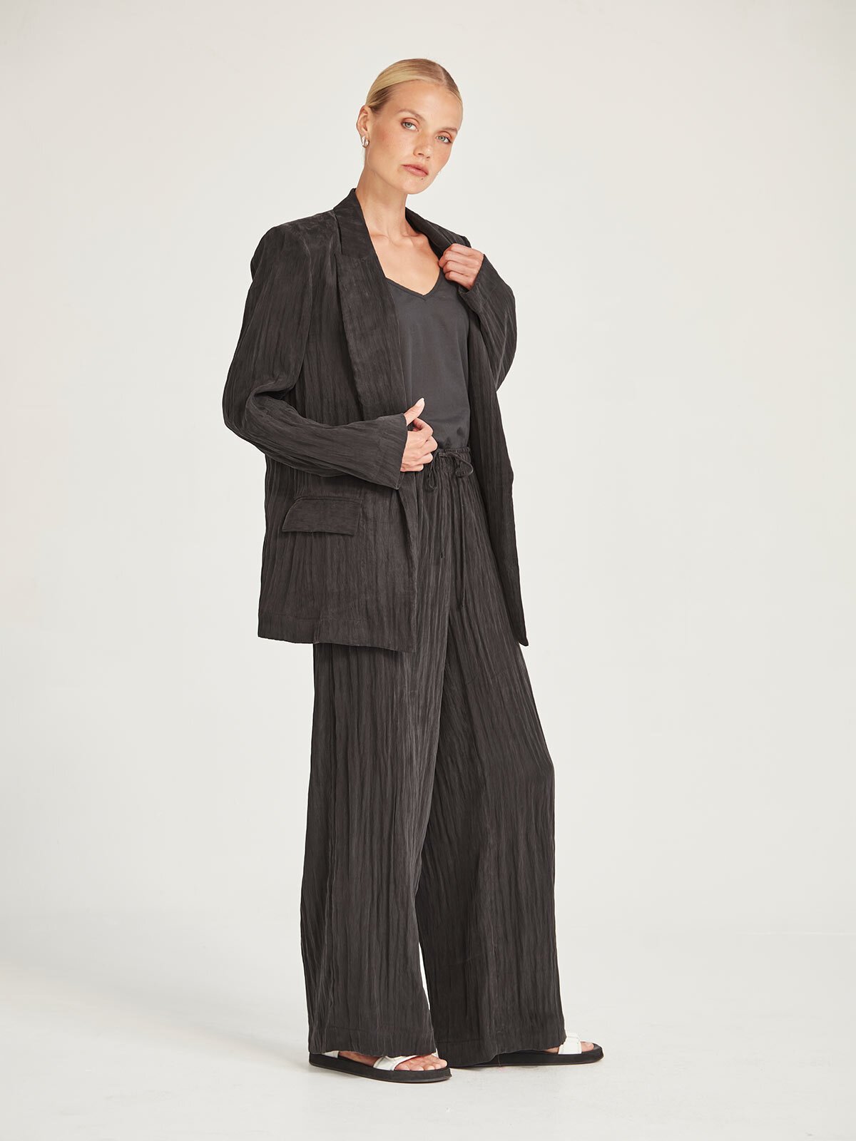 The Kenzi Pant is crafted in an innovative new Sandwashed Suiting. This classic style is elevated through its crinkled texture and suede-like hand feel. Wear with the matching Sienna Blazer for a coordinated look.