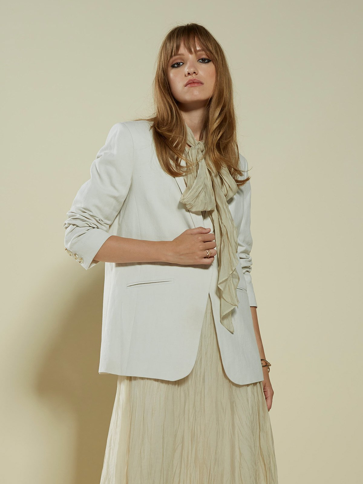 Our elegant 'The Boss Blazer' in a tailored herringbone blend suiting for summer has a fabulous 'boyfriend' cut and will give any outfit immediate polish and street cred. Based on the same cut as our popular Winter Boss Blazer, its perfect for a formal Tux event or wear it back with jeans and one of our quality feminine shirts or tees.