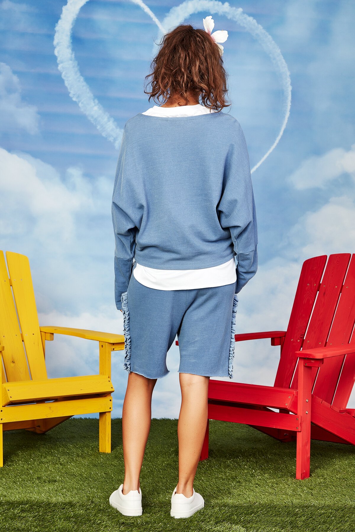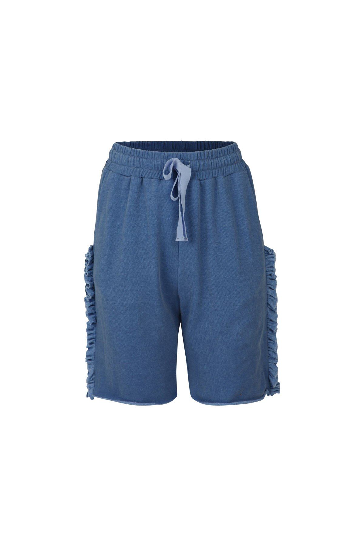 Designed in the' Sweat + Cares' cotton blend sweat shirting fabric. Elastic waist with grosgrain ribbon drawcord, knee-length and features frills up the side. Pair with the 'Hem And Now' Sweatshirt for a casual matching set or with a Tee for comfy, casual-cool. Available in blue, grey marle and black.