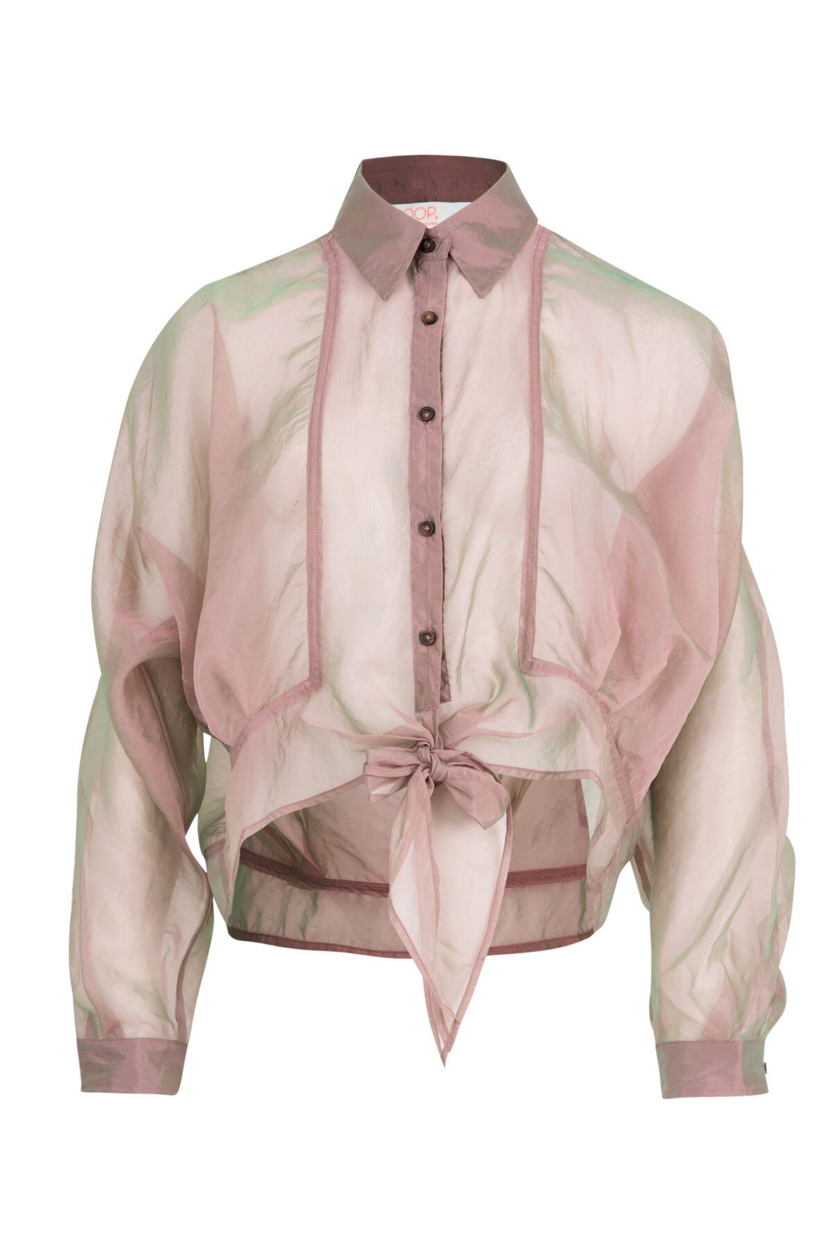 Impossible to ignore, the ‘Tied & Tested’ blouse is your secret weapon for effortless polish with a playful twist. Designed in the ‘Organza Bonanza’ iridescent organza, it features a classic button up front, batwing sleeves, and sheer finish, all about balancing softness with structure. A waist tie cinches into a dramatic bow bringing the right amount of statement to this tailored silhouette. Dress it up, layer it down or let it steal the spotlight on its own.