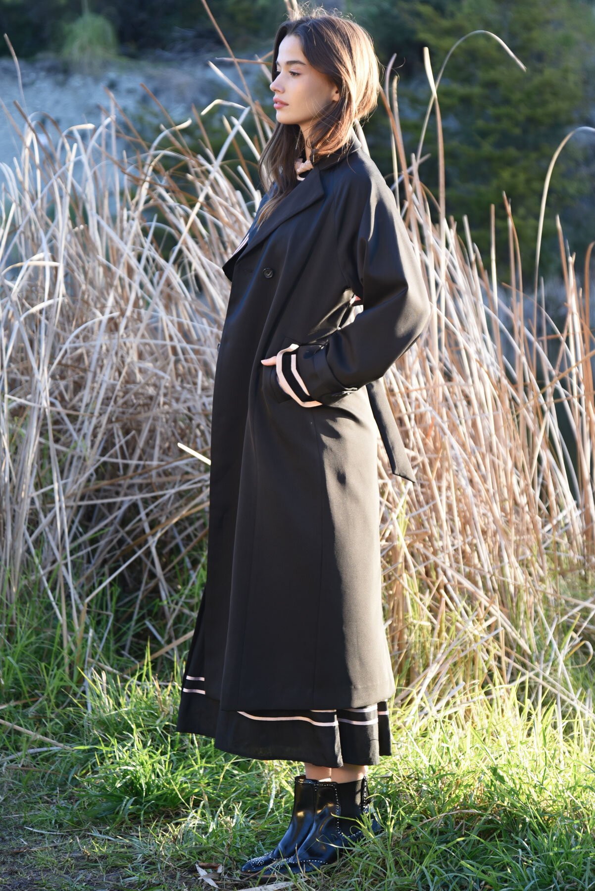 Blending classic sophistication and modern flair, the ‘Trench Connection’ trench coat is a must for cool-weather dressing, crafted in 'License to Twill' drapey satin twill. Featuring a double-breasted front and sharp notched lapels, this timeless piece is finished with a self-belt tie for a flattering silhouette, while contrasting grosgrain trim adds an unexpected touch of flair. Perfect for layering over everything from office wear to weekend looks, it’s your go-to for effortless, fashion-led style.