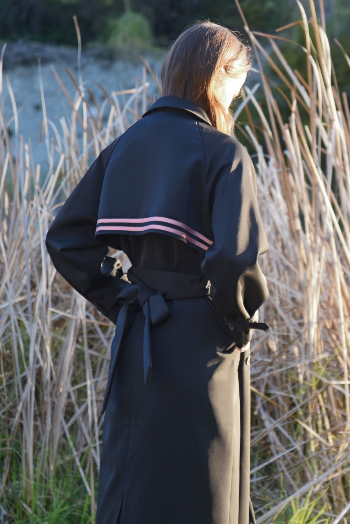 • Double breast front• Notched lapels• Buckle cuff straps• Raglan inset sleeves• Storm flap with grosgrain trim• Centre back split