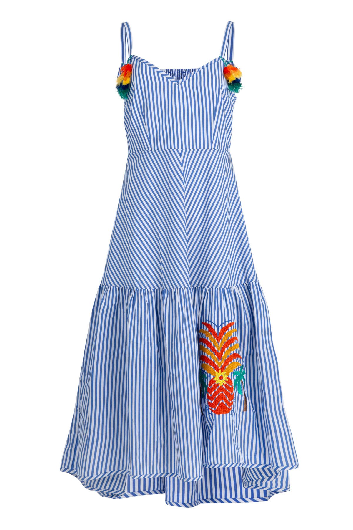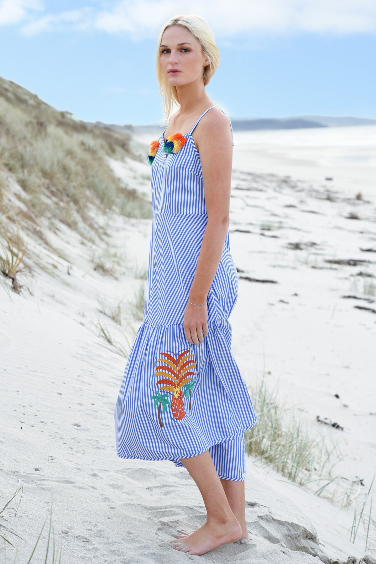 Boasting fun colourful details with its pineapple and palm tree embroidered motif, and multi-coloured tassels, the ‘Figure it Out’ dress will take you from day to night in a breeze no matter the occasion. Crafted in the ‘Down the Stripe Line’ fabrication, this mid-weight cotton dress features a fit and flare silhouette, polished off with a shirred back panel, sweetheart neckline, and adjustable straps. Dress up or down with effortless ease with a switch of the shoes.