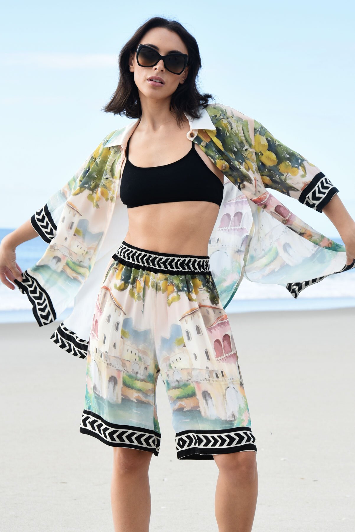 Step away from the florals and embrace summer landscapes with our ‘Postcards from Italy’ fabrication showcased in the ‘In the Know’ shirt. This shirt features button through detailing, finished with coconut buttons, and a classic collar. Pair with the ‘Seville Strolls’ trouser for a matching ensemble that is true to ‘Cooper’ styling.