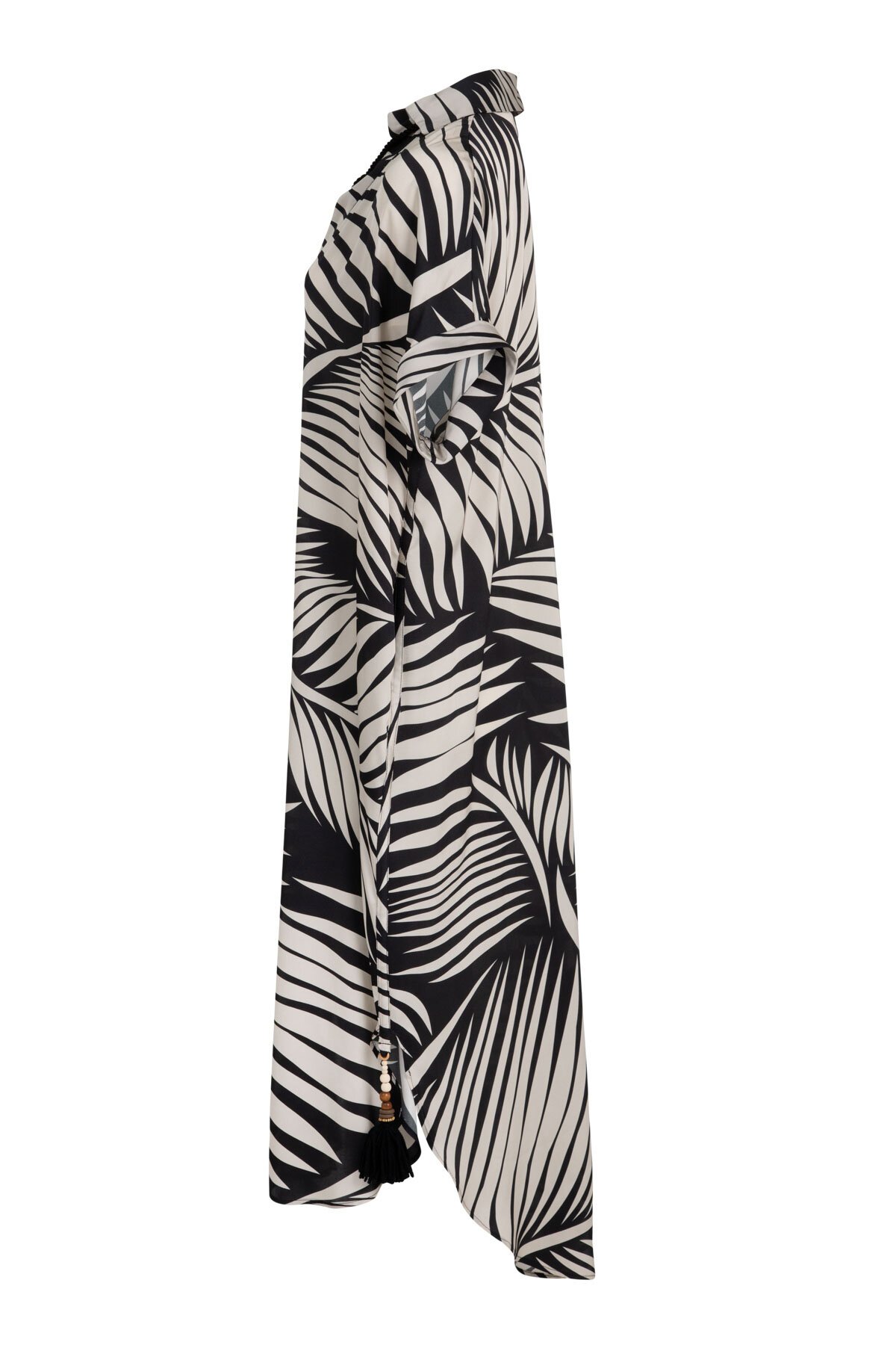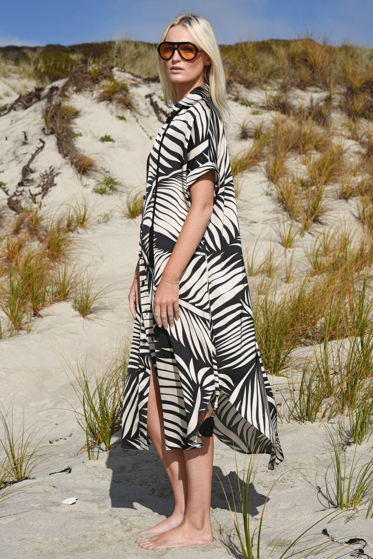 Embody summer dressing with ease with the help of our ‘Be-Leaf in Magic’ fabrication showcased in the ‘On the Button’ dress. Built for warm weather needs, this shirt dress features a button through front, fixed rolled cuffs, and high side splits complete with beaded tassel trim. Wear over your favourite trousers for the layered look, or as a dress. Functionality and versatility is what we are about.