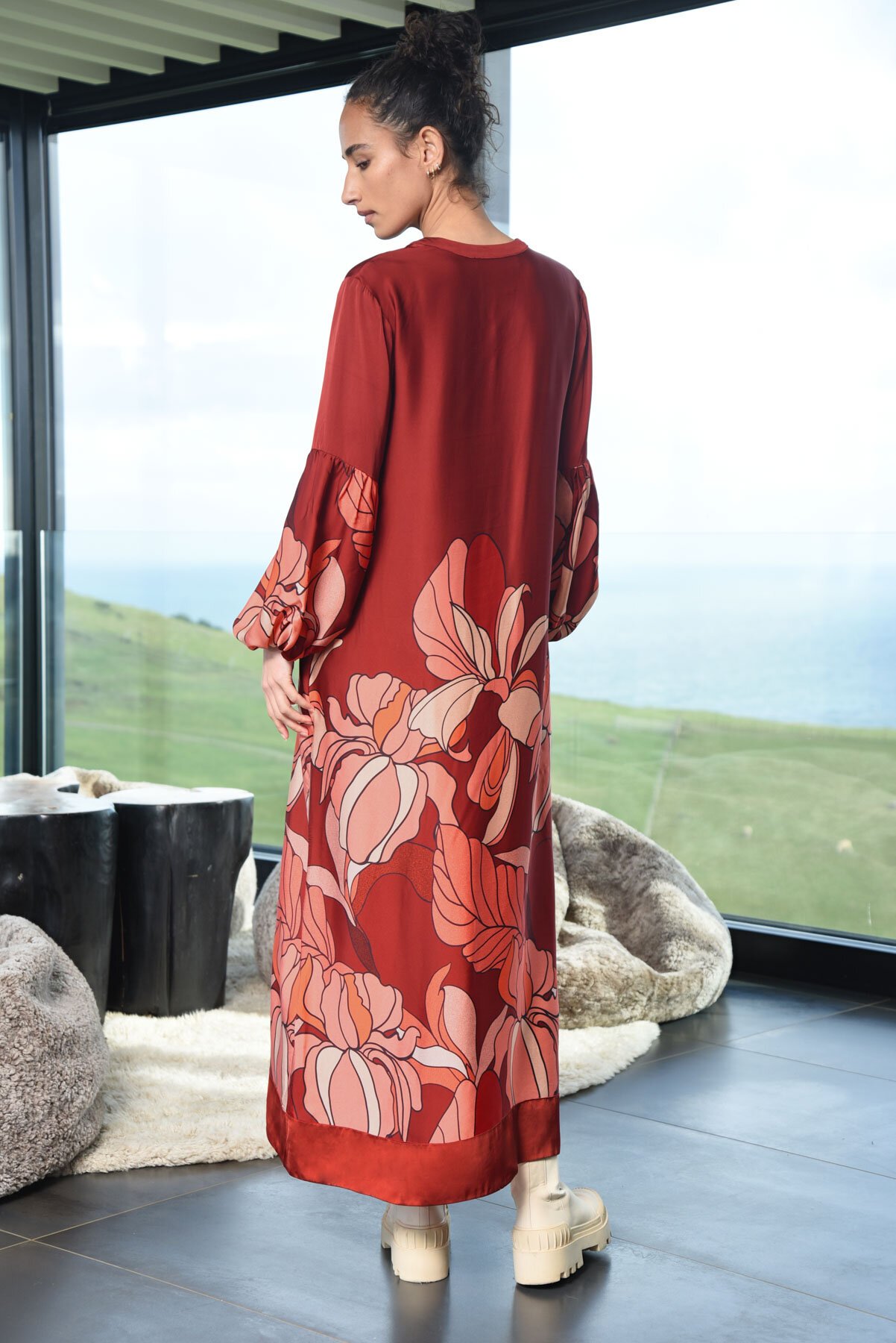 Boasting the ‘Paint the Town Red’ viscose satin fabrication, embrace effortless elegance with the ‘Putting in a Shift’ dress. A flowing kaftan silhouette designed for those who value comfort and style, the soft draping fabric creates a relaxed yet refined silhouette with side splits that offer movement and ease. A flattering notched neckline adds a touch of sophistication while pockets add practicality and charm. Perfect for day and night, whether you’re enjoying a casual outing or stepping out for evening allure.
