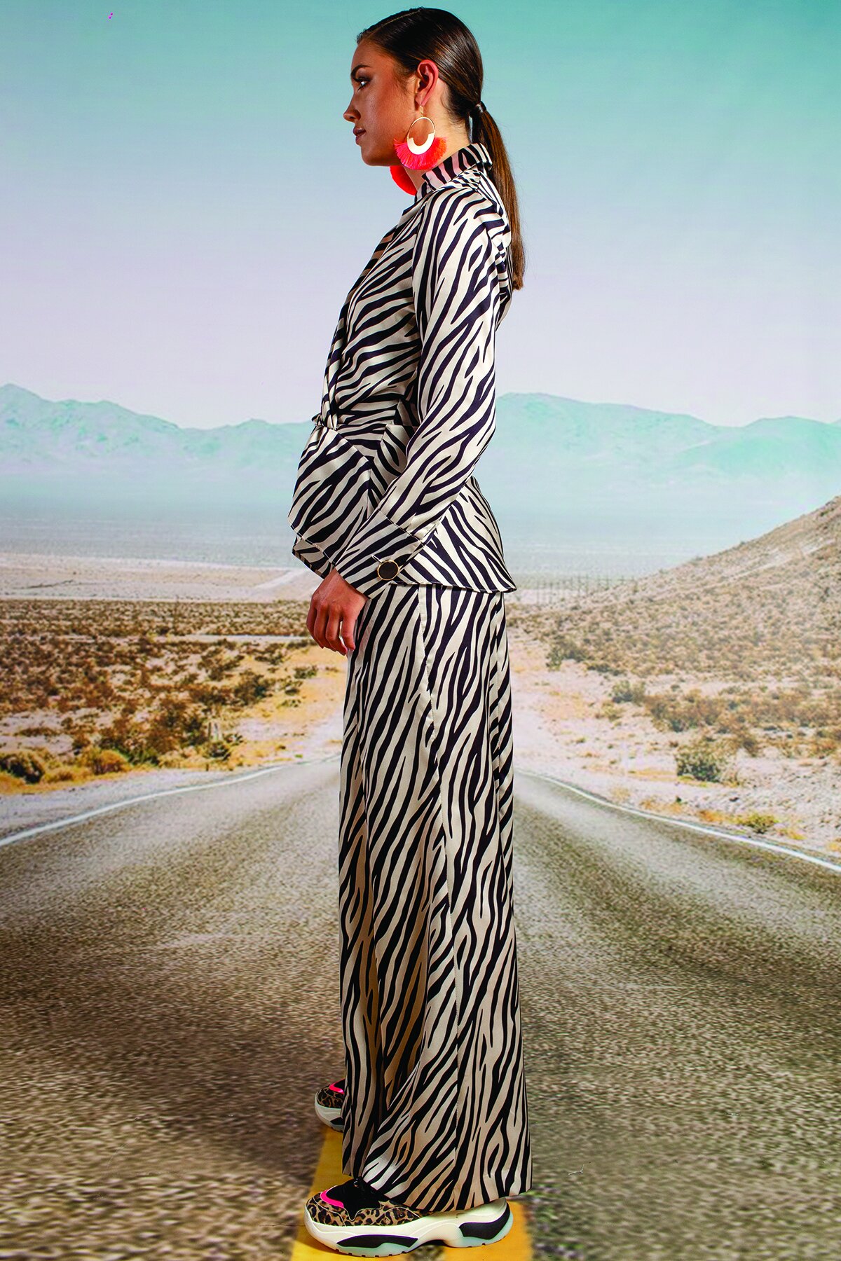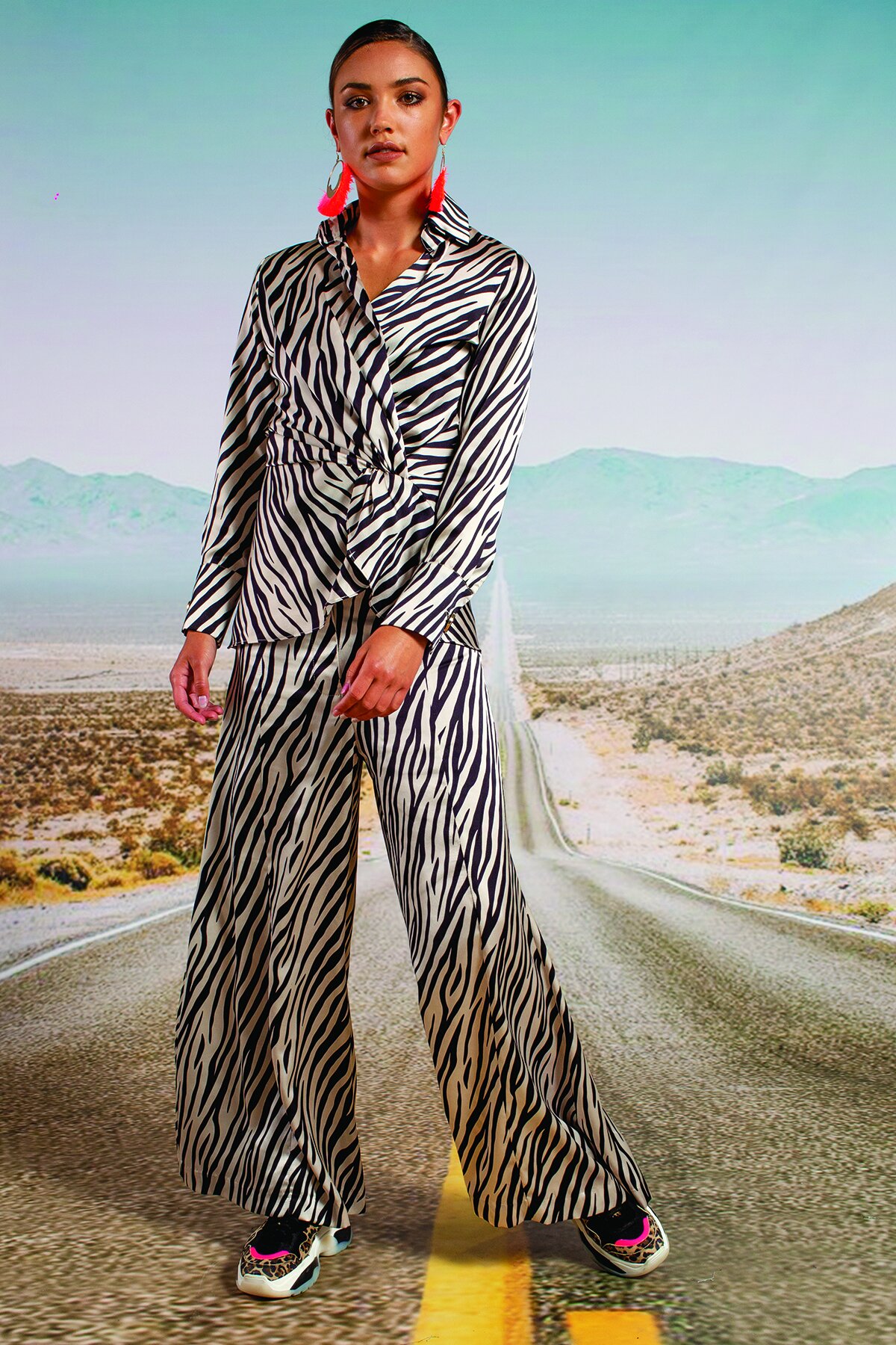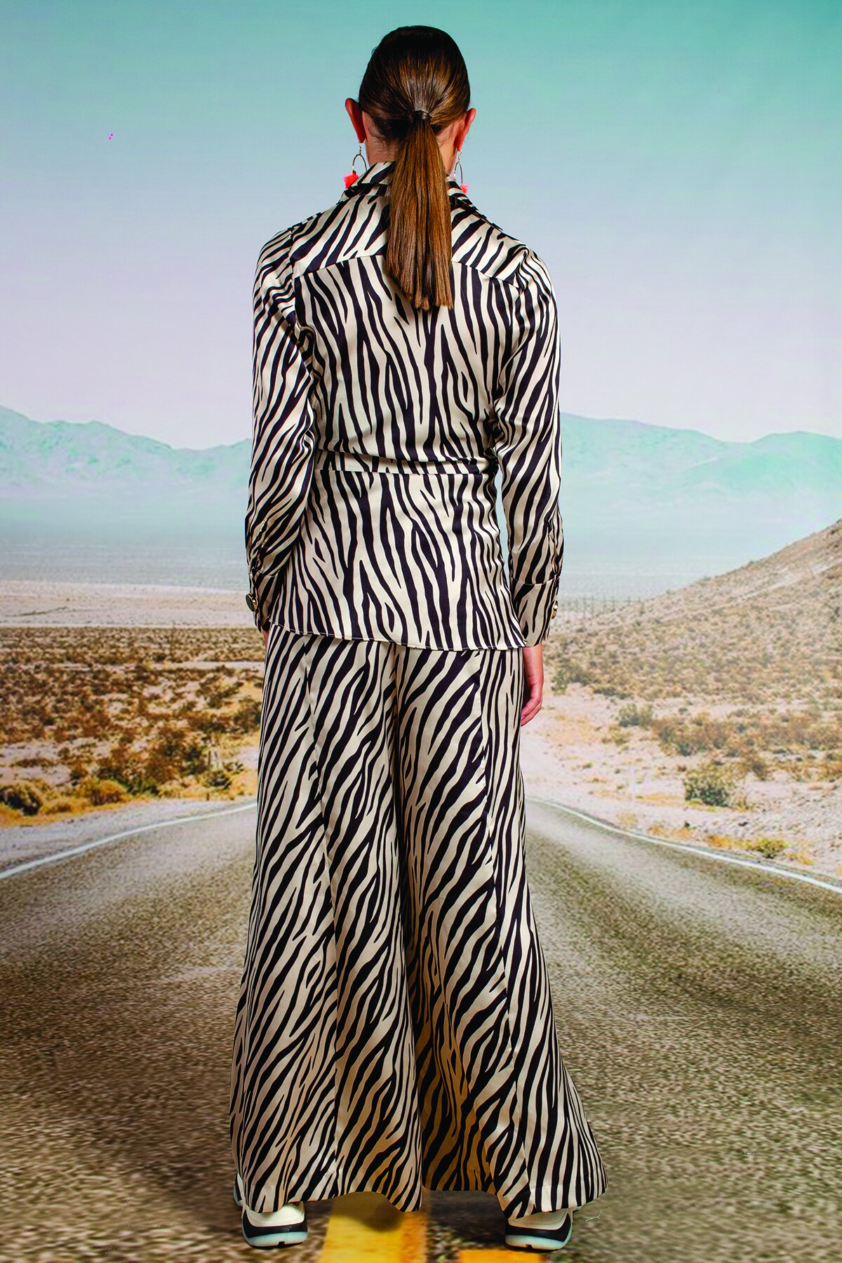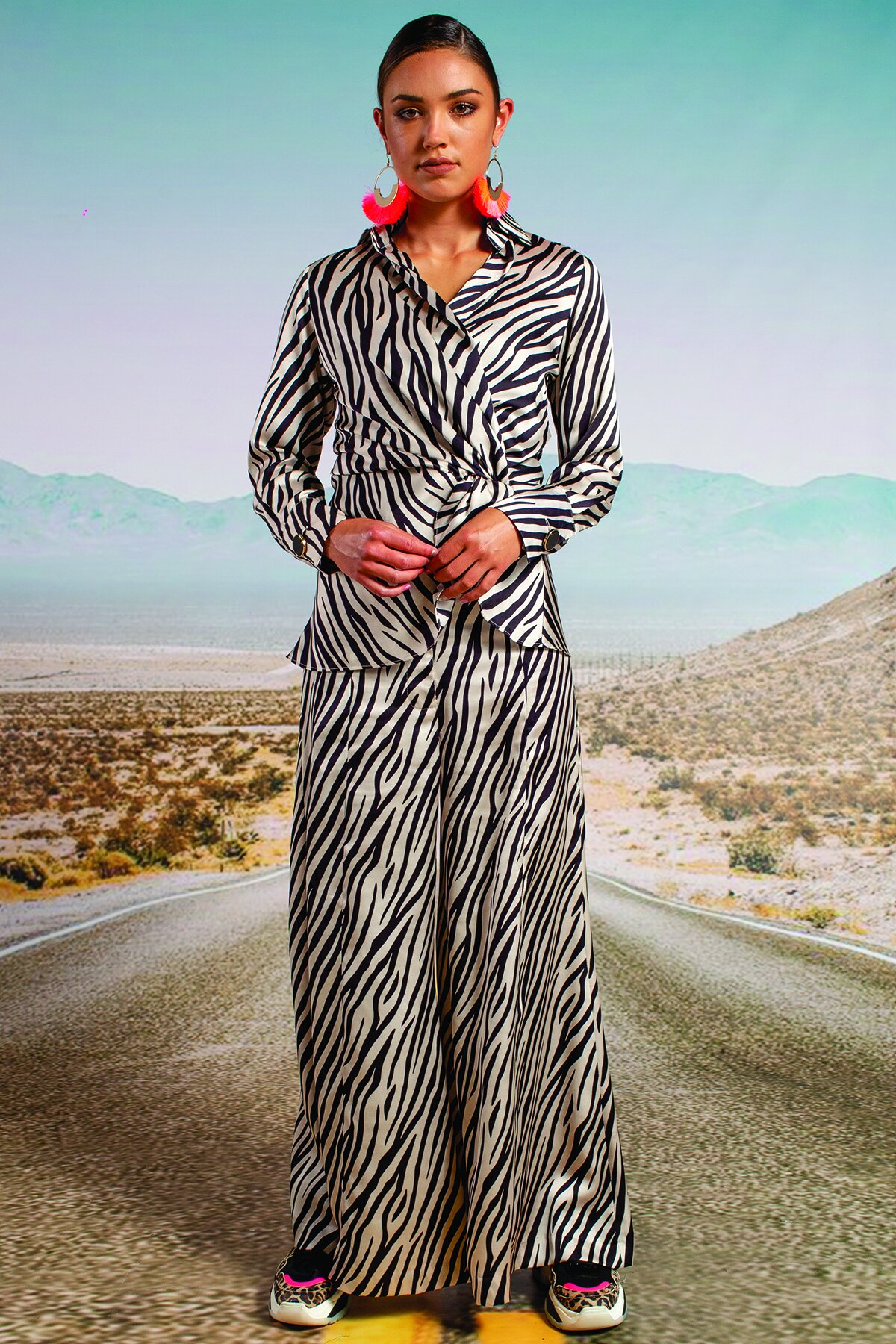 Designed in ‘A Dazzle Of Zebras’ luxurious printed satin. An extra wide-leg floaty trouser with fly front and high-waist cut. Make a statement and wear with the matching ‘Cross On Over’ shirt or the ‘Long Way To Love’ dress as pictured.