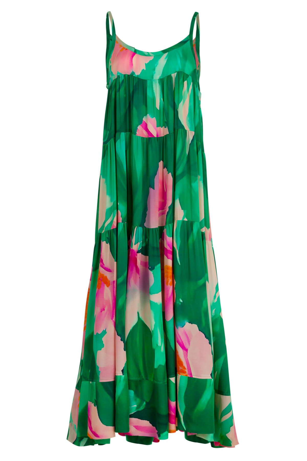Slip into summer with fresh new florals with the aptly name ‘Summer Love’ dress. Crafted in our ‘Flower Child’ satin fabrication, this swing style dress boasts gathered tiers that flare down from the neckline offering flattering movement and ease of wear, complete with  fixed straps and coconut shell side button closure. A captivating statement piece, pair with sandals or heels for the perfect summer resort look.
