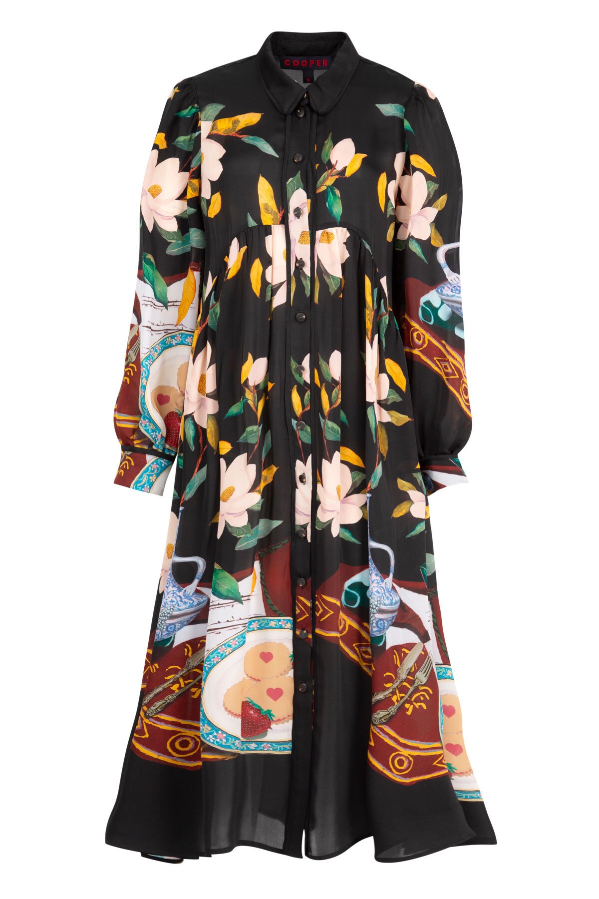 • Gathered sleeves with fixed cuff