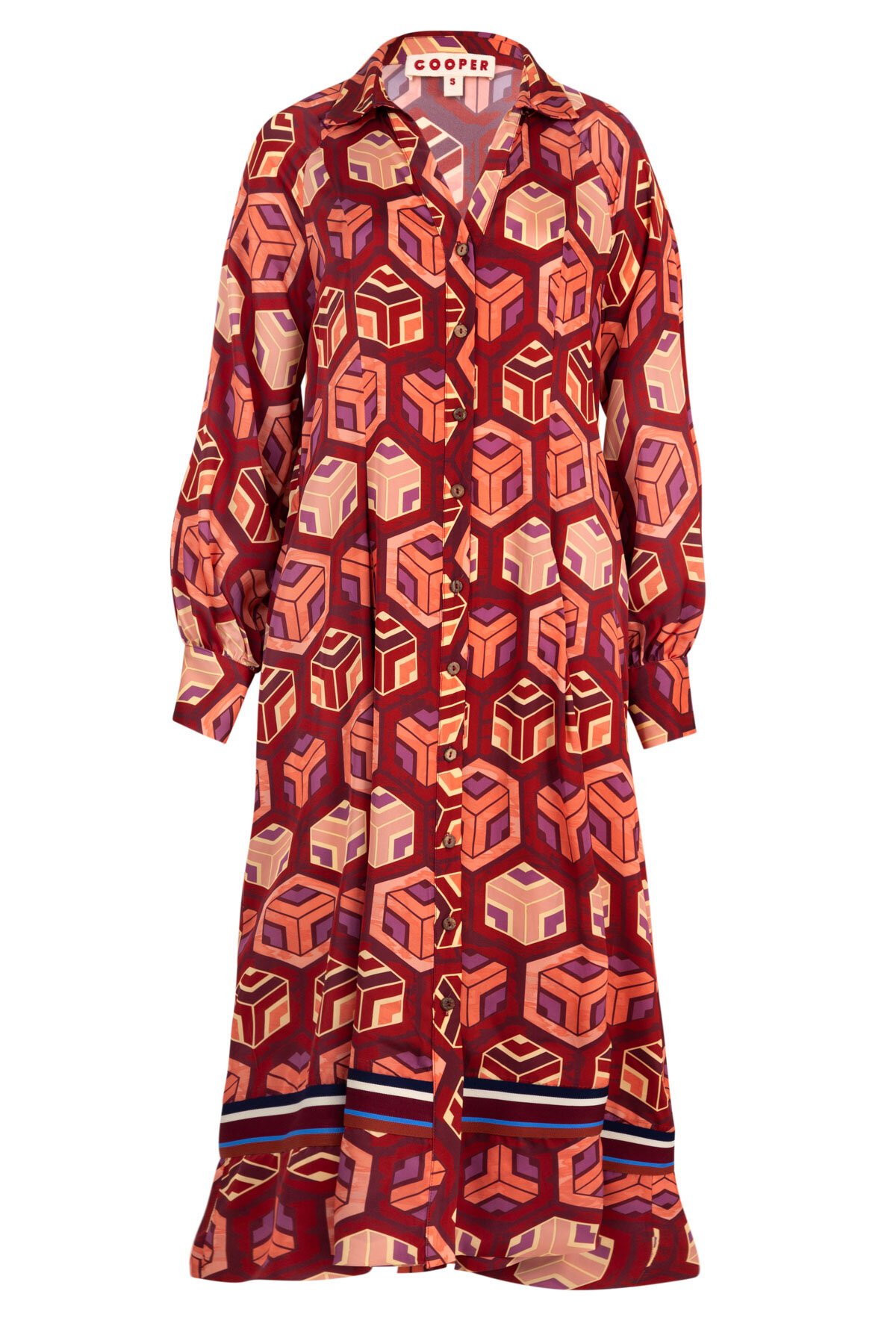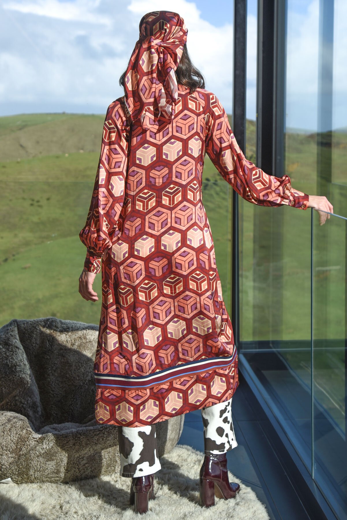 Designed with bold sophistication in mind, the ‘Winterful Dress’ dress is a masterclass in modern elegance. Crafted from the ‘Bold and Beautiful’ weighty satin fabrication that feels luxurious against the skin, the geometric pattern adds depth and intrigue, with rich hues that are perfect for the fall season. A button through front offers a classic refined look, complemented by grosgrain trim. Whether styled with boots or heels, this dress seamlessly transitions from casual to chic.