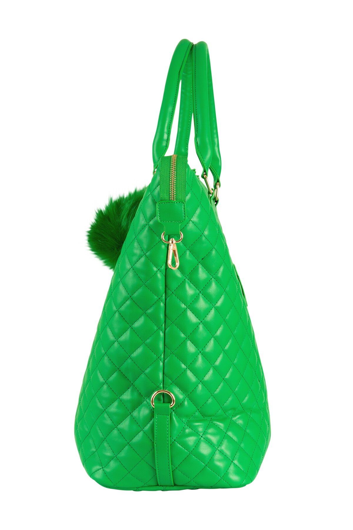 The perfect finishing touch! Our 'Not Quilty' bag is the ultimate accessory for this season. Whether you like understated black, classic nude or want to venture into some colour with hot pink or vivid green, there's something for every one. With its quilted texture and fun addition of a faux fur pom pom this bag is perfect for a shopping day or some added interest in the office!