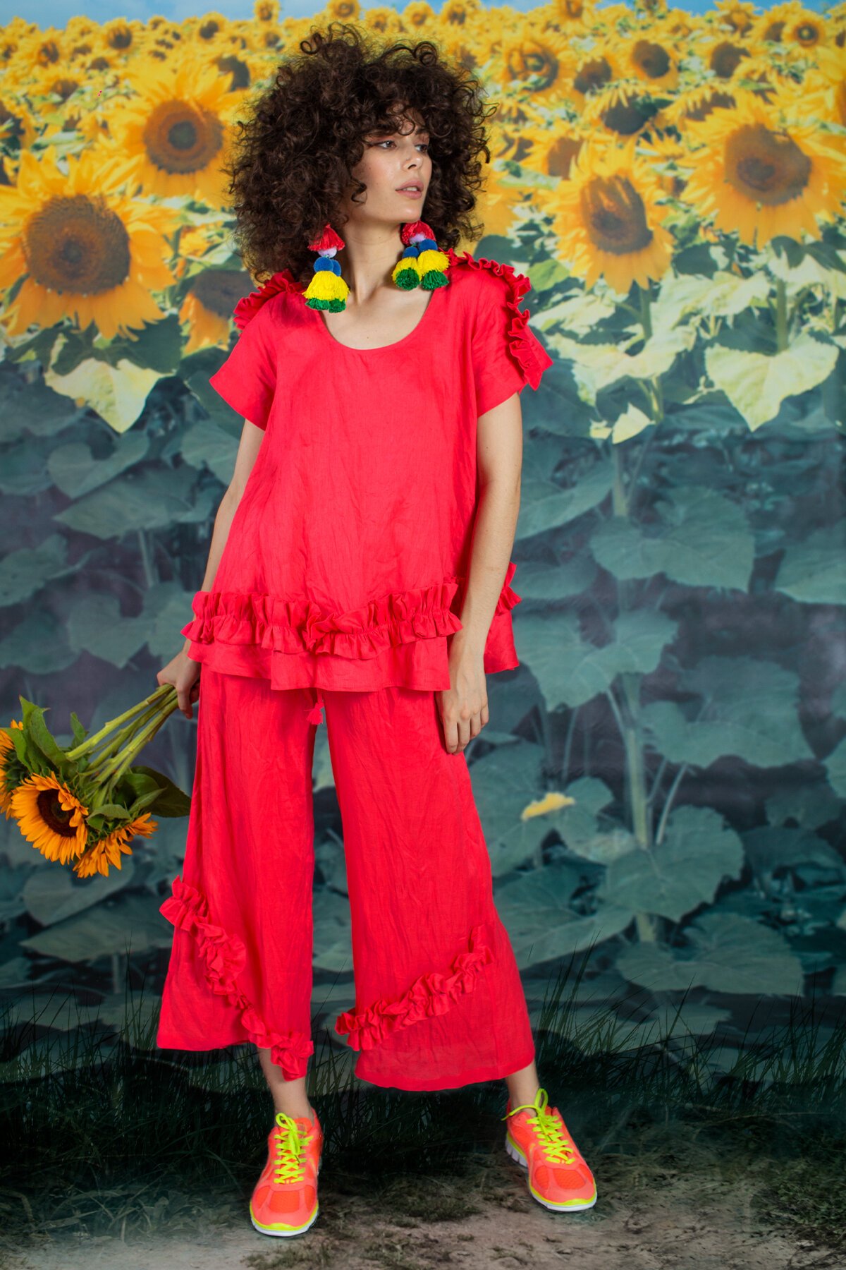 You’ll be ‘frilled’ with the ‘Pull Stop’ Pants from Curate by Trelise Cooper. Wide leg linen pants with elastic waistband and drawstring tie front, cropped with ruffle frill detailing at the ankle. Wear with the matching ‘Ruffle of Love’ top. Designed in 100% luxe linen that will remain a staple in your wardrobe forever. Available in 3 colours.