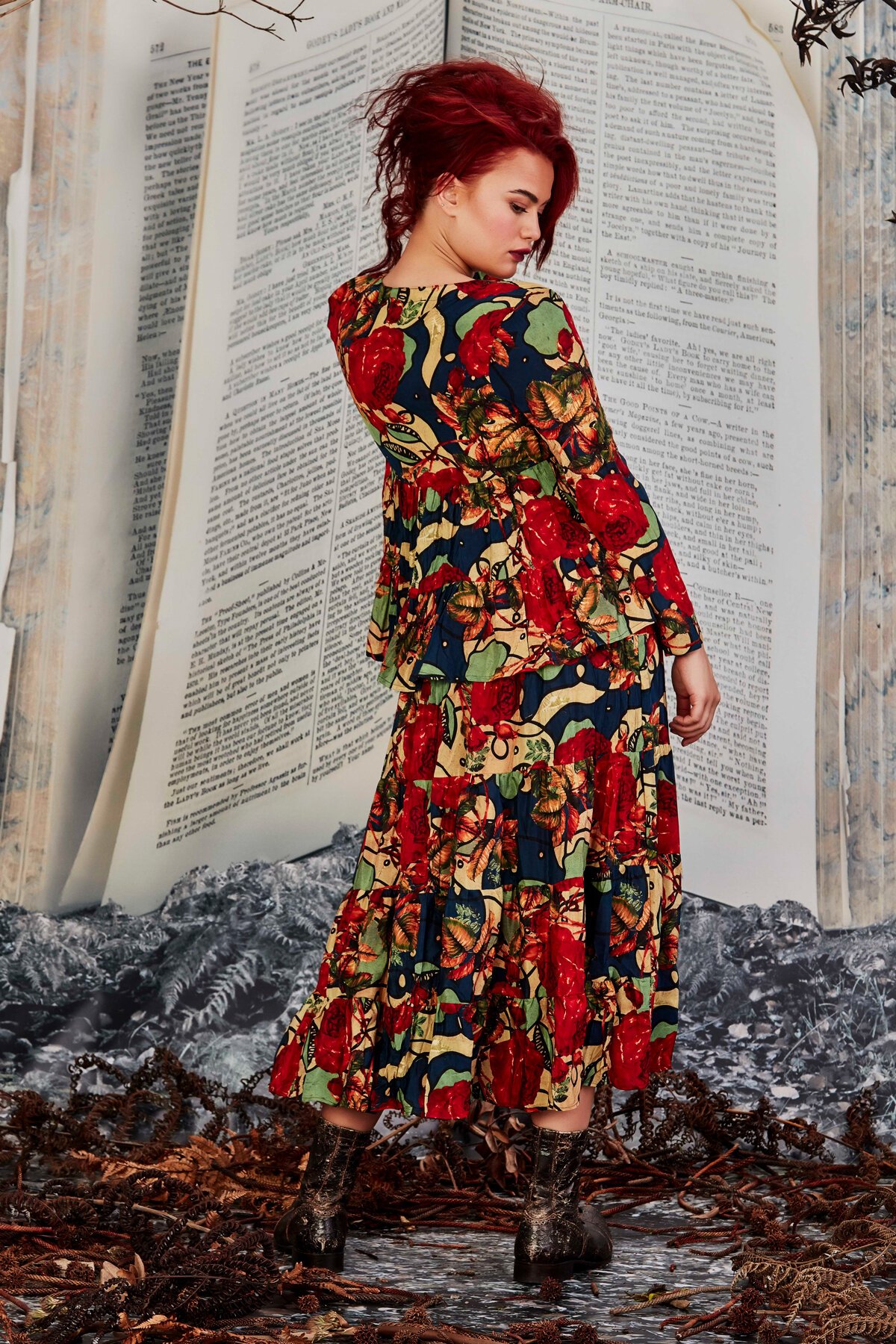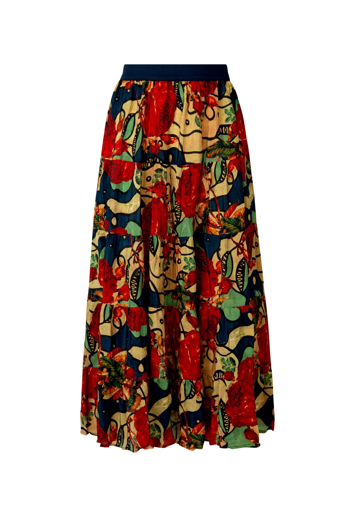 Designed in the 'World Of Flowers' viscose fabric. This tiered gathered skirt is the perfect romantic addition to your Prefall wardrobe, features a contrasting baby pink elastic waistband.