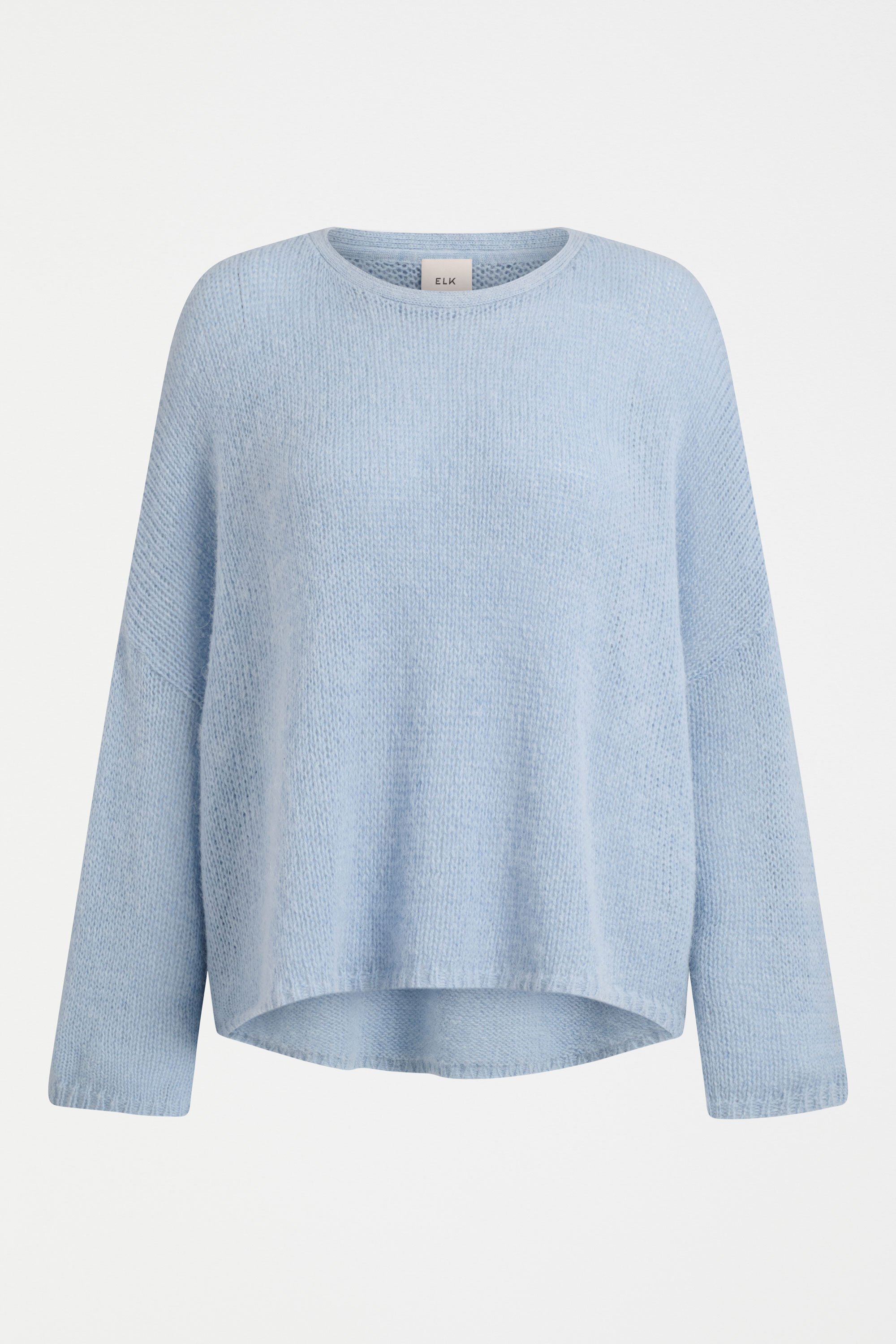 ELK favourite sweater style. Easy-to-style boxy cut and a relaxed fit. Dropped shoulder detail with a wide sleeve opening. Ideal for layering. Comfortable alpaca blend yarn.