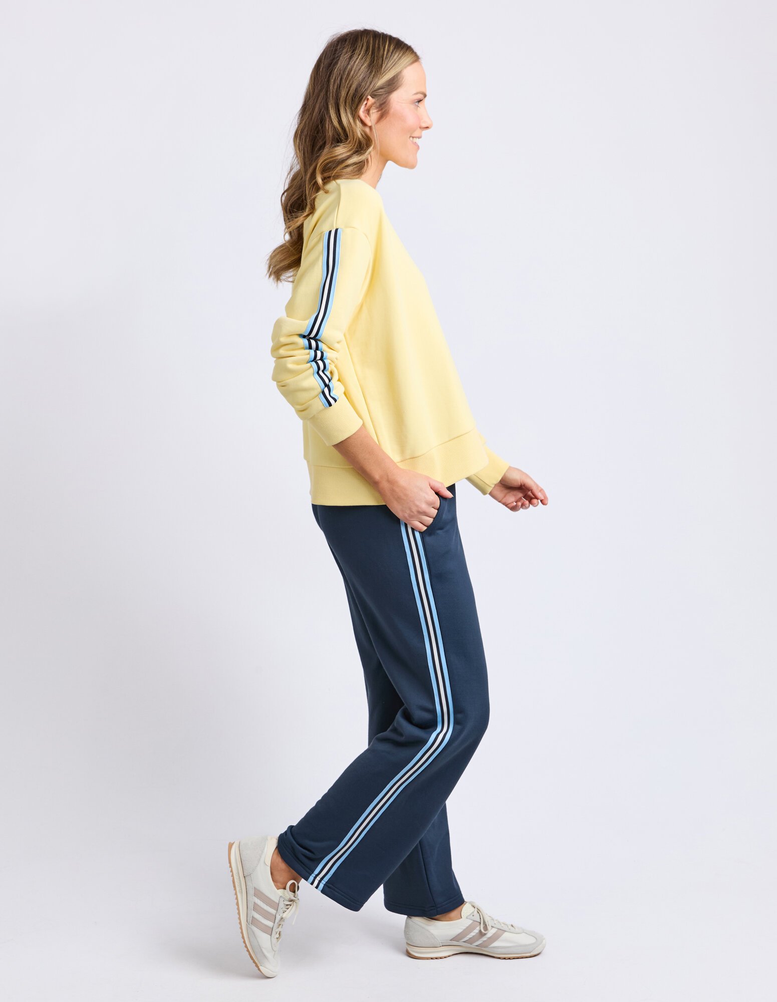 Elevate your everyday wardrobe with the Celeste Crew in soft pale lemon. This classic round neck crew features distinctive stripes running down the sleeves, adding visual interest and dimension to a timeless silhouette. Perfect for layering or wearing solo, it's versatile enough for casual weekends or relaxed workdays. The gentle lemon hue brings warmth and brightness to any outfit, while the striped sleeve detail ensures you'll stand out from basic basics. A wardrobe essential that combines comfort with understated style