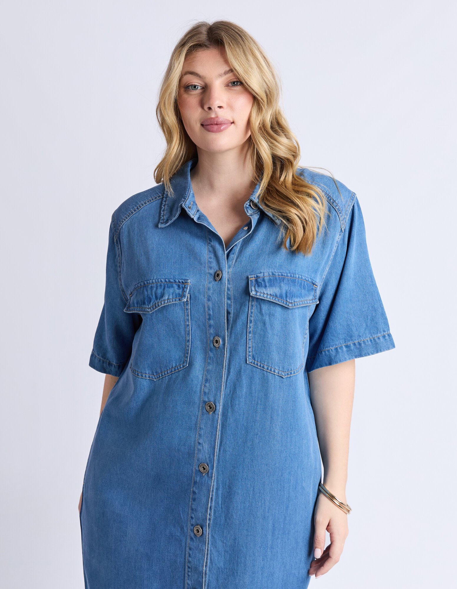 Elm CORA DENIM Dress - Dresses : Diahann Boutique - Elm S25Elm CORA DENIM Dress - Dresses : Diahann Boutique - Elm S25