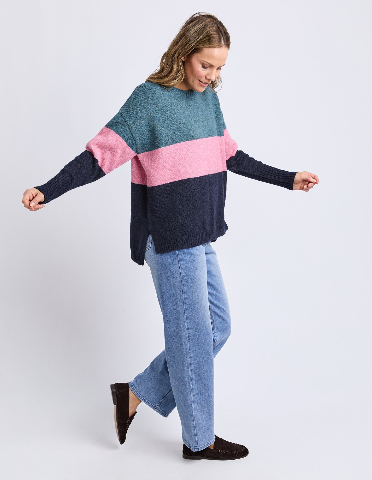 The Elm Cory Stripe Knit blends cosy texture with relaxed styling. Designed with drop shoulders, a classic crew neck and fluffy yarns, it delivers comfort with personality. Pair with denim or relaxed pants to balance the soft, oversized feel for easy daywear.