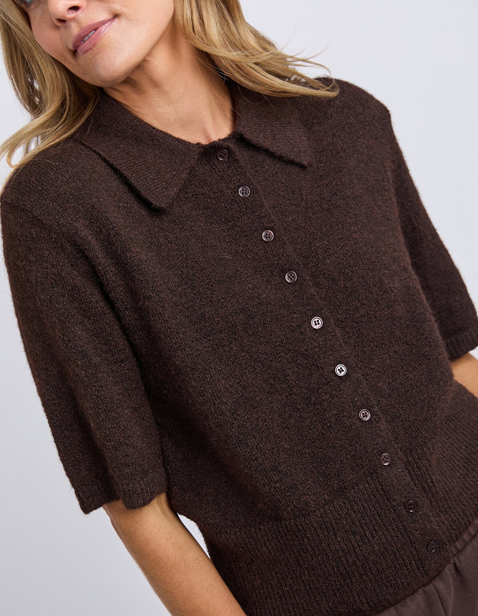 The Fernie Button Top is a knitwear staple with a classic, elevated finish. Featuring a collared neckline and full front button-through design, it’s perfect for layering or wearing on its own. The short sleeves and ribbed hem create a clean, flattering shape, while the relaxed fit makes it an easy option for everyday styling.