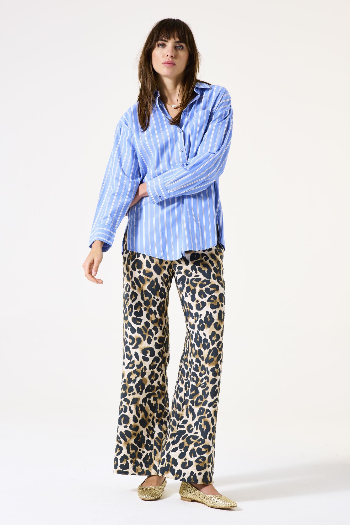 Striped blouse with a collar, long sleeves, and a button closure, featuring a regular fit for a comfortable look. This item is made of 100% cotton.
