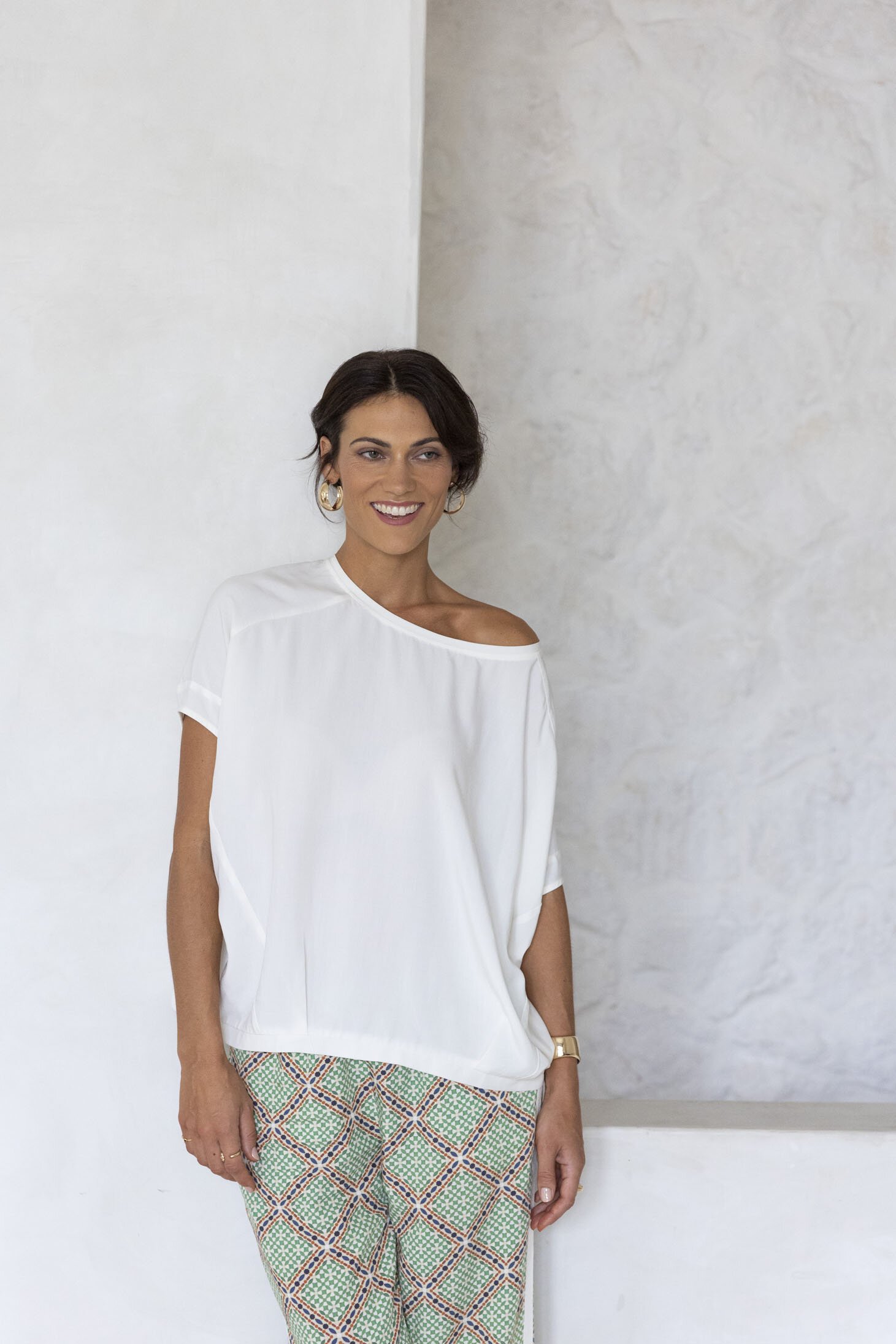 Staple summer blouse with boat neckline and oversized fit.