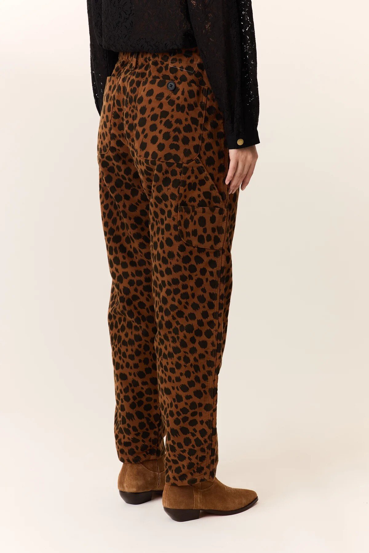 The Armina Leopard trousers embody Leon & Harper's boldness, featuring an animal print designed to energize your look. Made entirely of cotton, they offer a straight cut that follows the silhouette while remaining fluid and comfortable for everyday wear. The refined finishes include discreet seams and a classic fitted waistband for a natural fit. These trousers reflect the brand's bohemian DNA, perfect to pair with a plain top or a fine knit to play with layering.