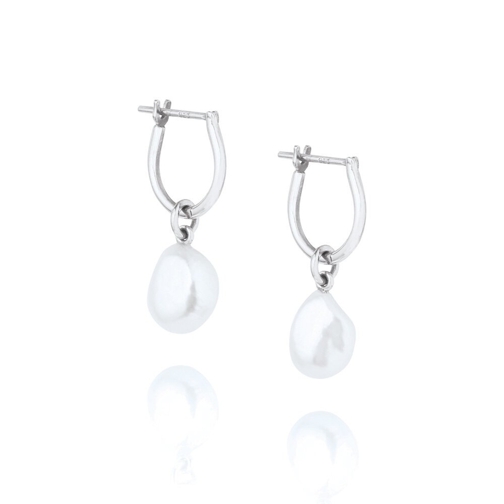 Our Baroque Pearl Basic Hoop Earrings are a basic hoop with a pearl feature. Made with nickel free sterling silver, featuring a polished texture.