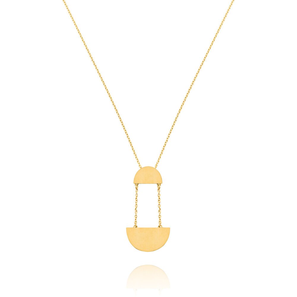 Hemisphere Necklace features two semi-circle pendants adjoined with a fine chain on either side, made with nickel free yellow gold plated sterling silver.