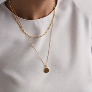 The Lunar Necklace features a celestial pendant with two natural blue sapphires on a fine figaro chain. Blue sapphires are symbolic of the heavens, with properties of healing and protection. A reminder to look to the sky for guidance, protection or a new perspective. Crafted in nickel-free sterling silver with a polished finish.