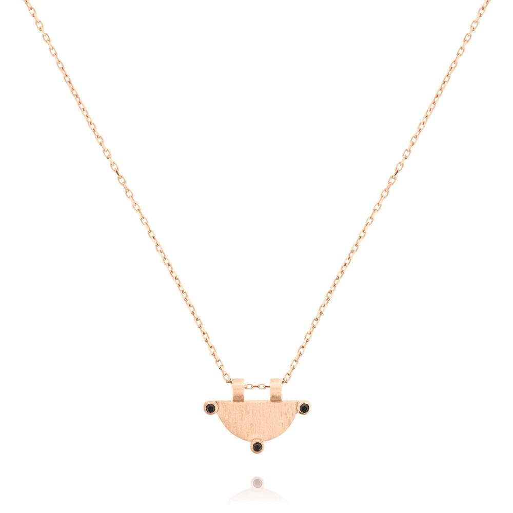 Power of Three Necklace features a fine, adjustable chain with a semi circle pendant and three black onyx stones. Made in nickel free rose gold plated sterling silver.