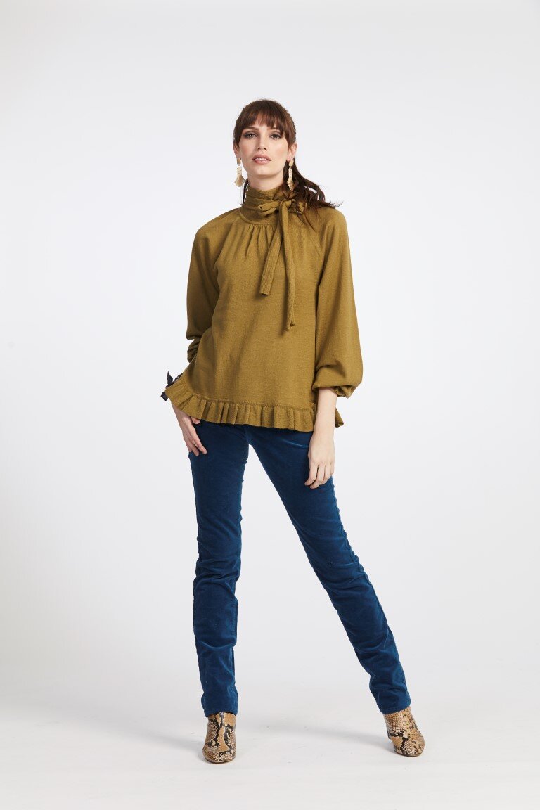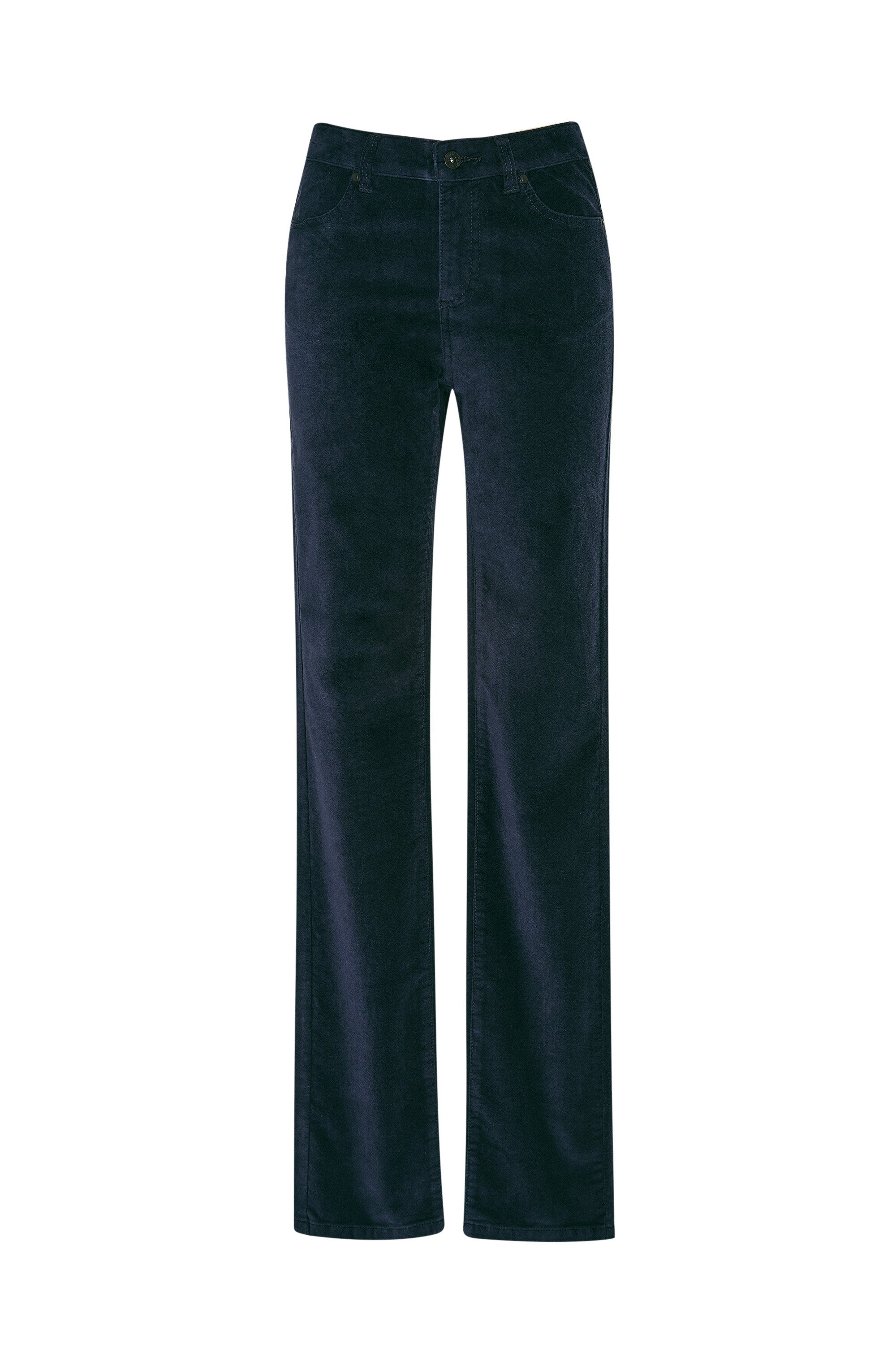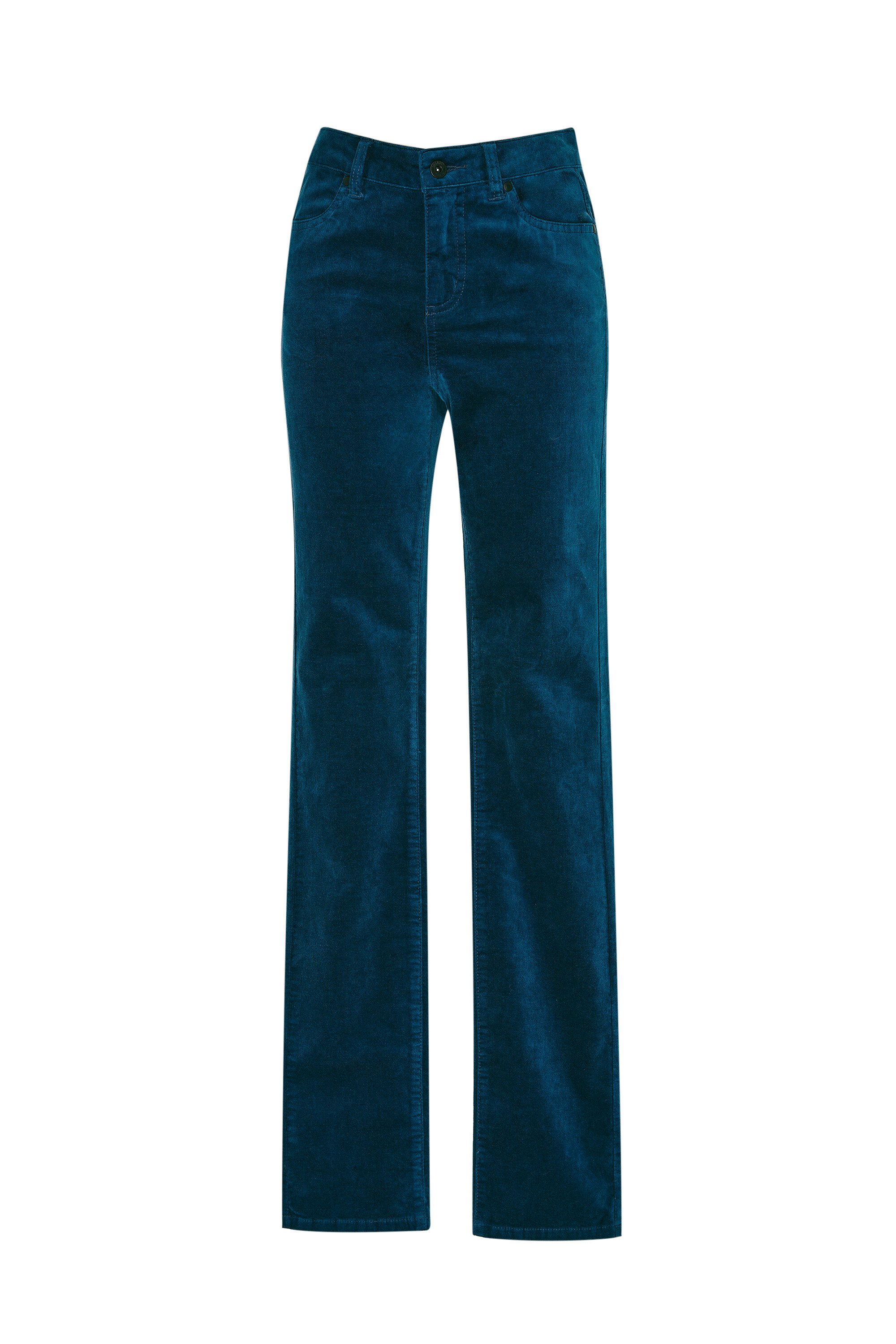 Stretch velveteen pant, slim fit with high rise sitting at your waist and straight leg line.