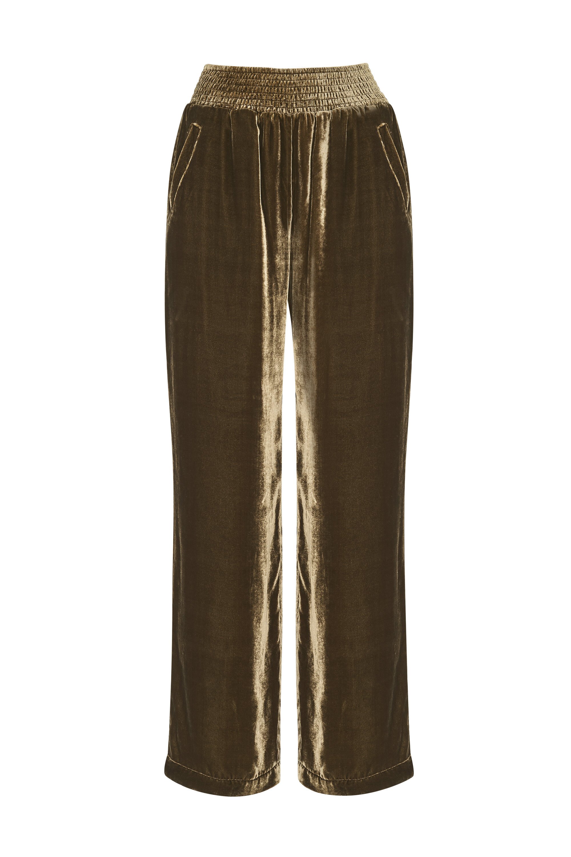 Luxurious viscose silk velvet skirt with elasticated waist, and ruffle that flows down front carrying on around hem