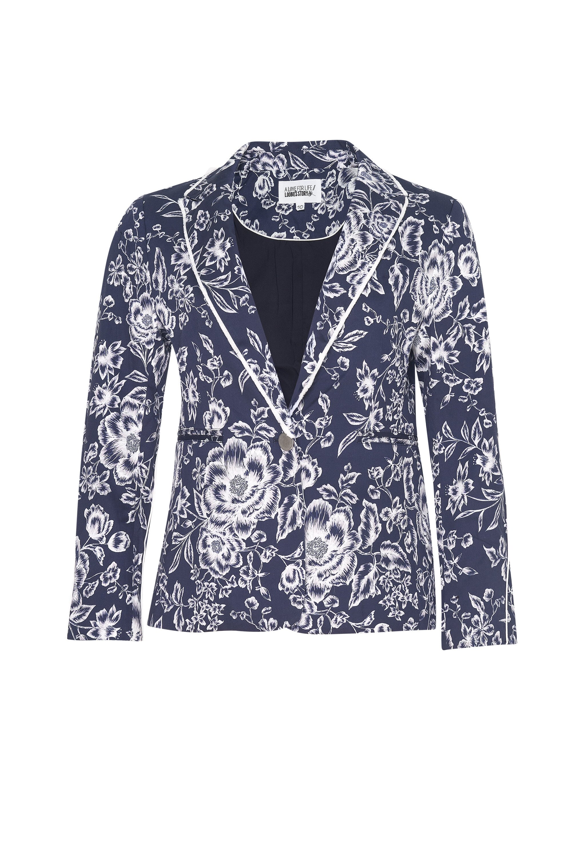 A twist on the classic Blazer - in a stretch fabrication this jacket will fit all shapes and sizes.  A lapel collar, button front fastening and lining allows it to be worn open or closed. Interesting lower sleeve panels create a great fit and shape and frayed trimming on lapel adds the Loobie touch!