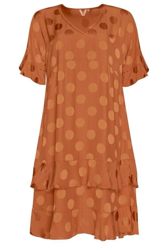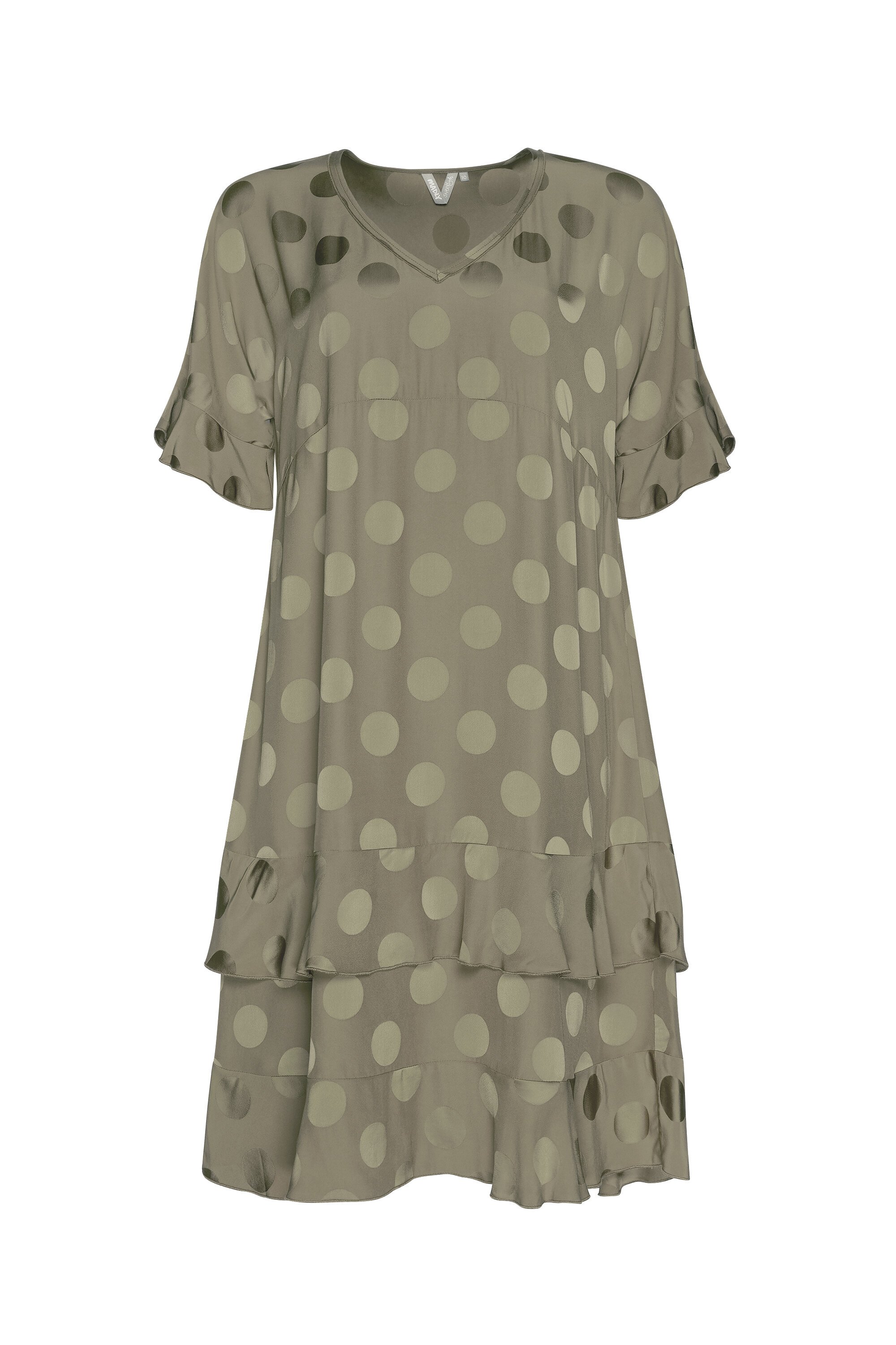 Easy wear dress with under bust shaping and self frills which add softness through the body. Self ruffle details on sleeve and hem.