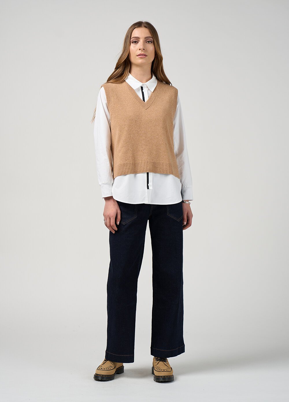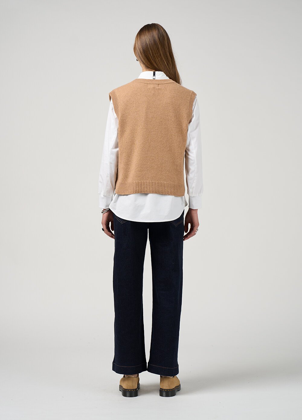 V-neck vest in a super soft merino-cotton blend, featuring ribbing detail around neckline, cuffs and hem. Perfect for layering.