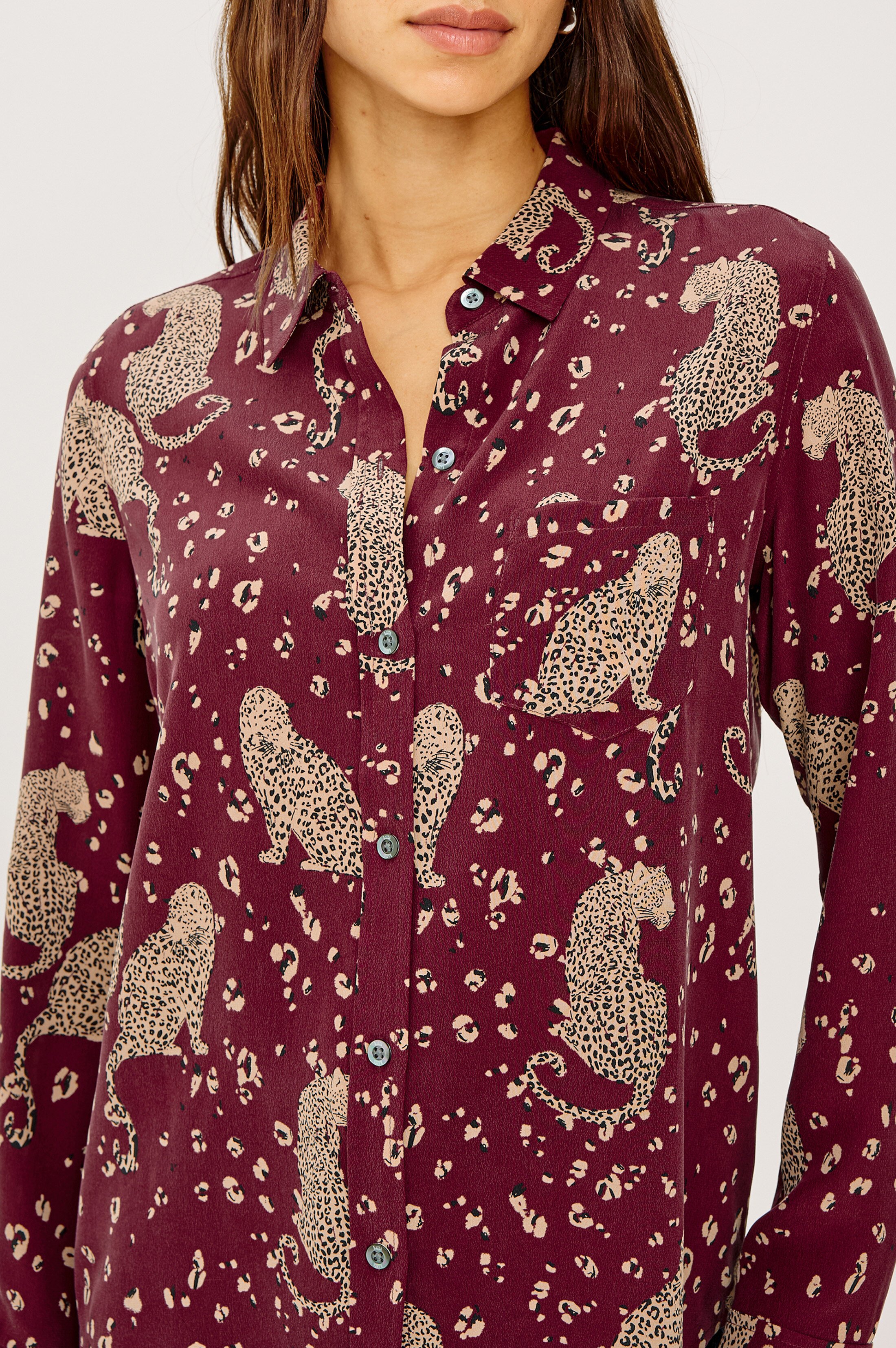 Head into the wild with the Kate, a luxurious washed silk button-down finished with a playful animal print. With classic shirting details, including a single-chest pocket and classic fit, this is a wardrobe foundational essential that will deliver a timelessly polished look from day to night.