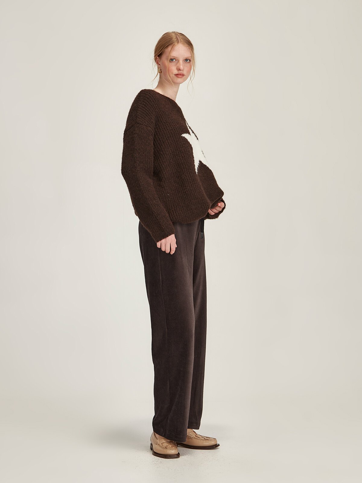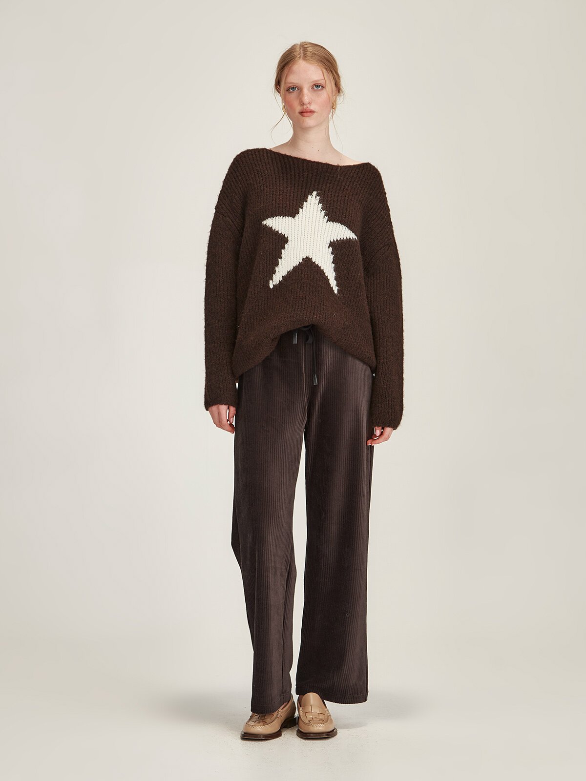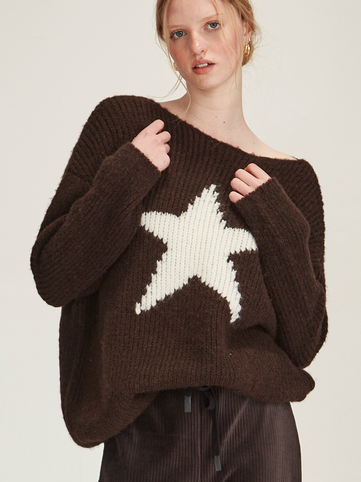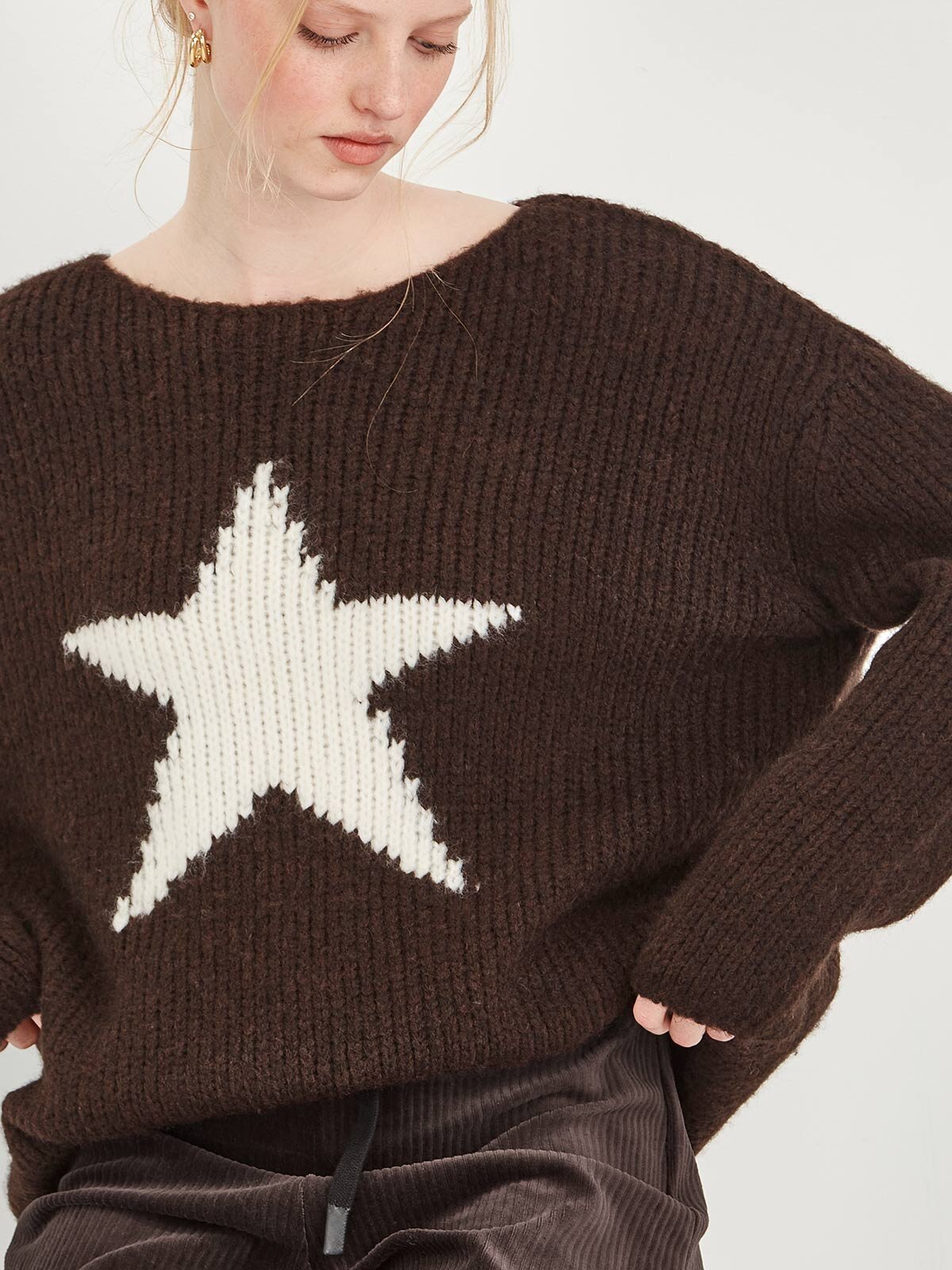 The Alice Weekender is knitted in our new Lofty yarn - a luxurious Wool and Alpaca blend - and is adorned with a contrasting star. The boyfriend style adds to the cosy nature of this piece.