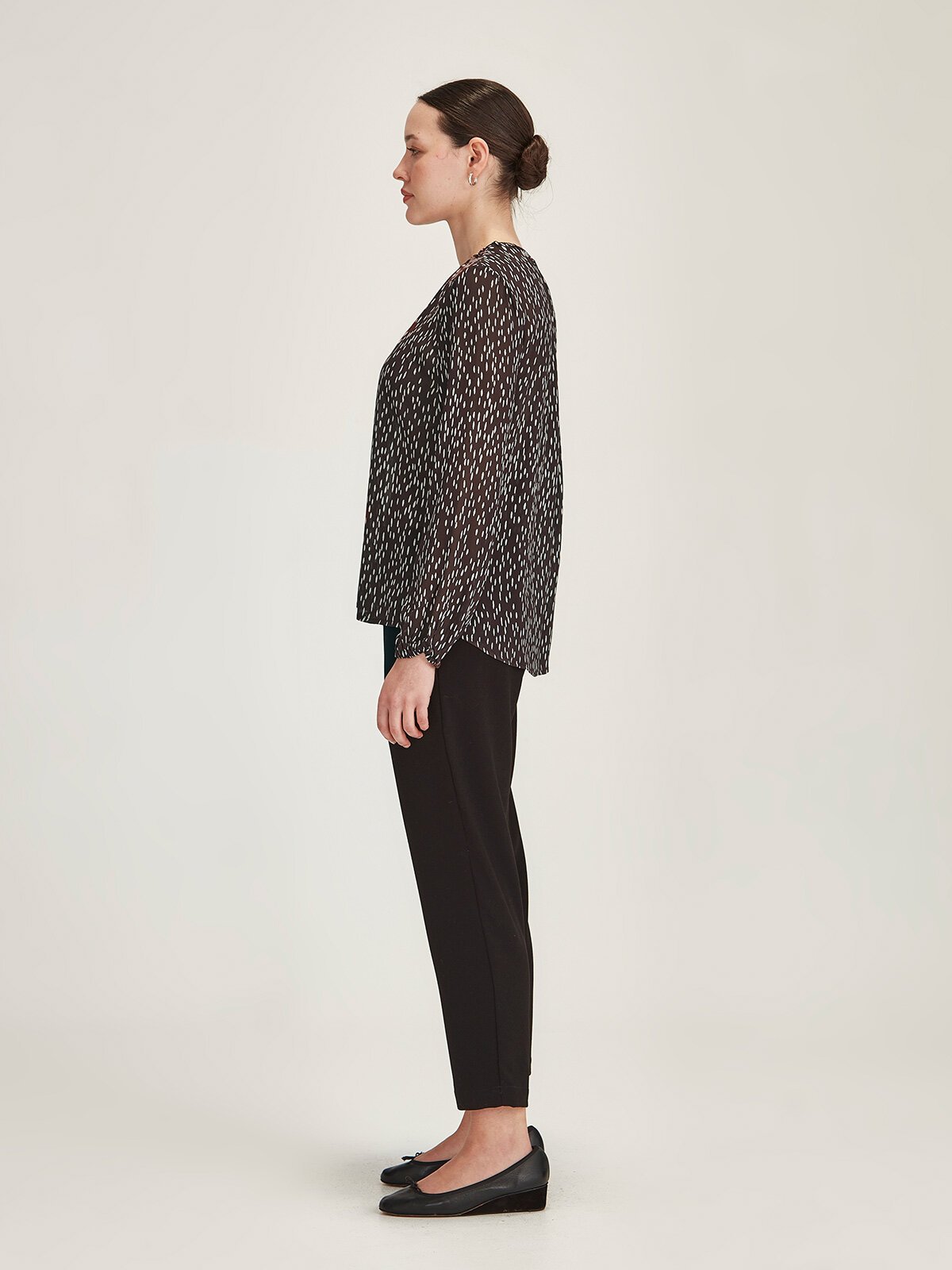 Based on our bestselling Wintour Top from AW25, but in a new, floatier fit. Made in the limited-edition Raindrop Spot print.