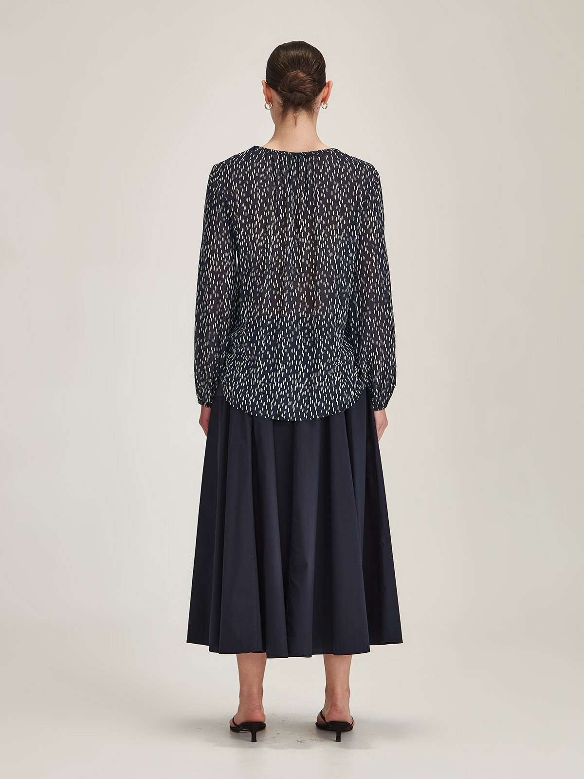 Based on our bestselling Wintour Top from AW25, but in a new, floatier fit. Made in the limited-edition Raindrop Spot print.
