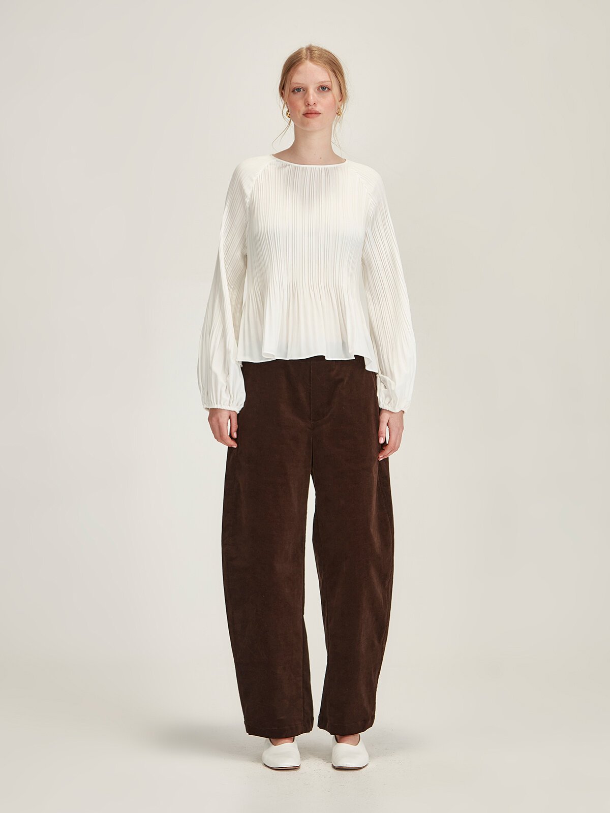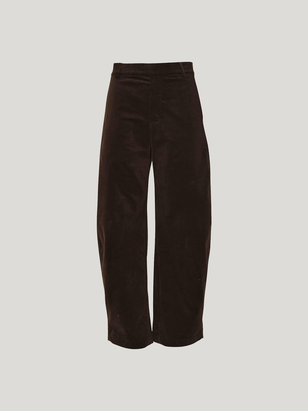The Corbin features a sculptural barrel leg created with panels and dart detailing. Crafted in our coveted Stretch Baby Cord to create a universally flattering fit.