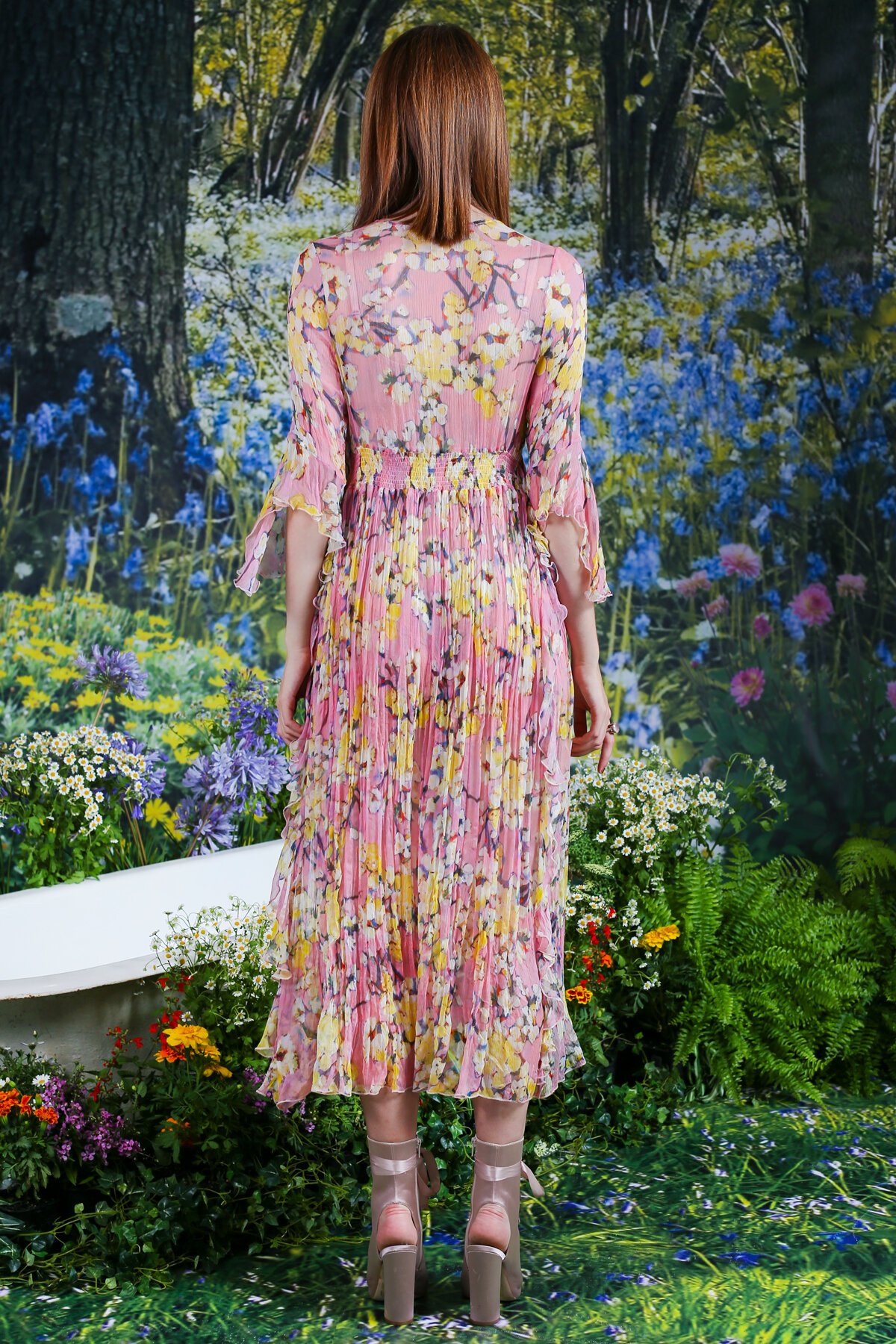 Designed in the prettiest CHERRY BLOSSOM GIRL floral silk yoryu fabric with cross-over V-neck, empire waist with fluted 3/4 length sleeves. Perfect for when you need a flattering, beautiful dress for a Spring cocktail event, BBQ or brunch with the girls.