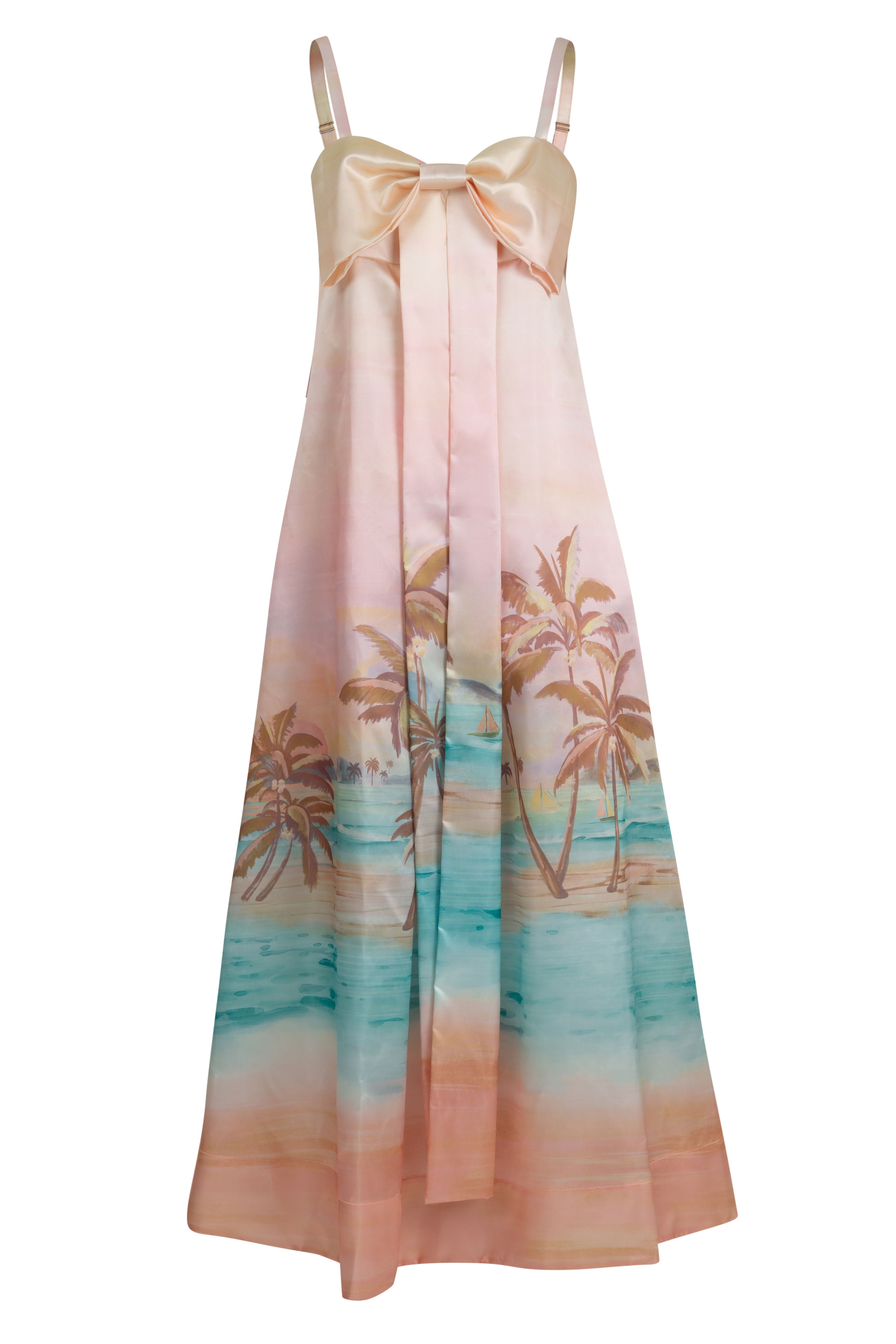 Crafted with a centerpiece bow detail combined with the unique artisanal touch of the ‘A Day at the Beach’ fabrication, the ‘Give it a Bow’ dress creates an immediate statement, allowing you to step into drama, grace and sophistication. This taffeta dress features adjustable straps and pockets for comfort, it falls from the bust down in fabulous long columns creating sculptural lines with inverted pleats at the back for detail. Build for galas to resorts, sunlit parties or evening soirees, make a sartorial statement at any occasion.