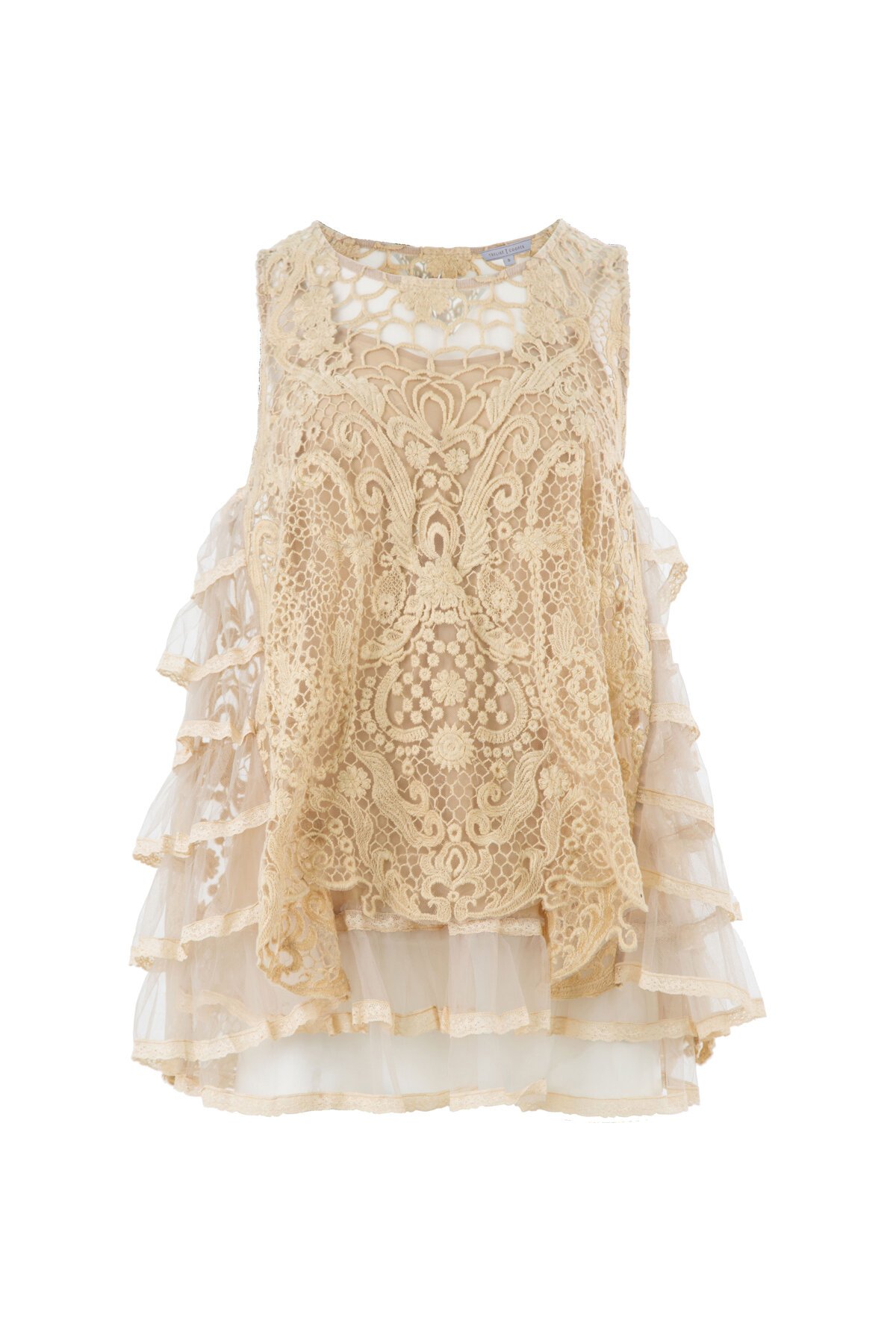 Stunning one-of-a-kind 'Addicted To Love' embroidered lace crafted in an easy-to-wear, A-line silhouette with layered tulle side panel frills. Detailed but easy to dress up or down. We love this top teamed with the "Strut Like Jagger' trousers.