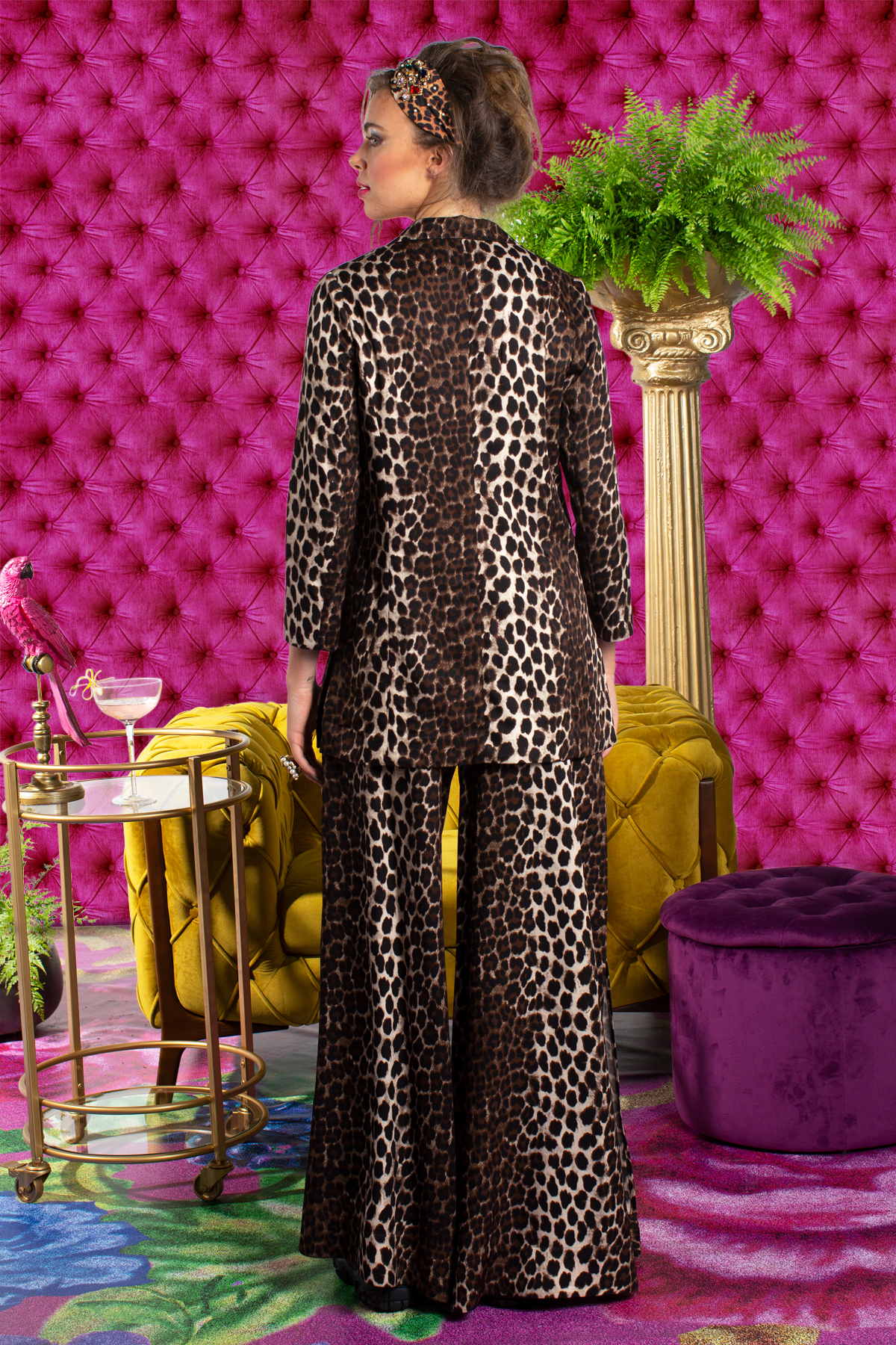 Statement wide-leg leopard 'Pounce On Me' print viscose twill trousers with side splits. Wear with the matching 'Hung Up On You' jacket.