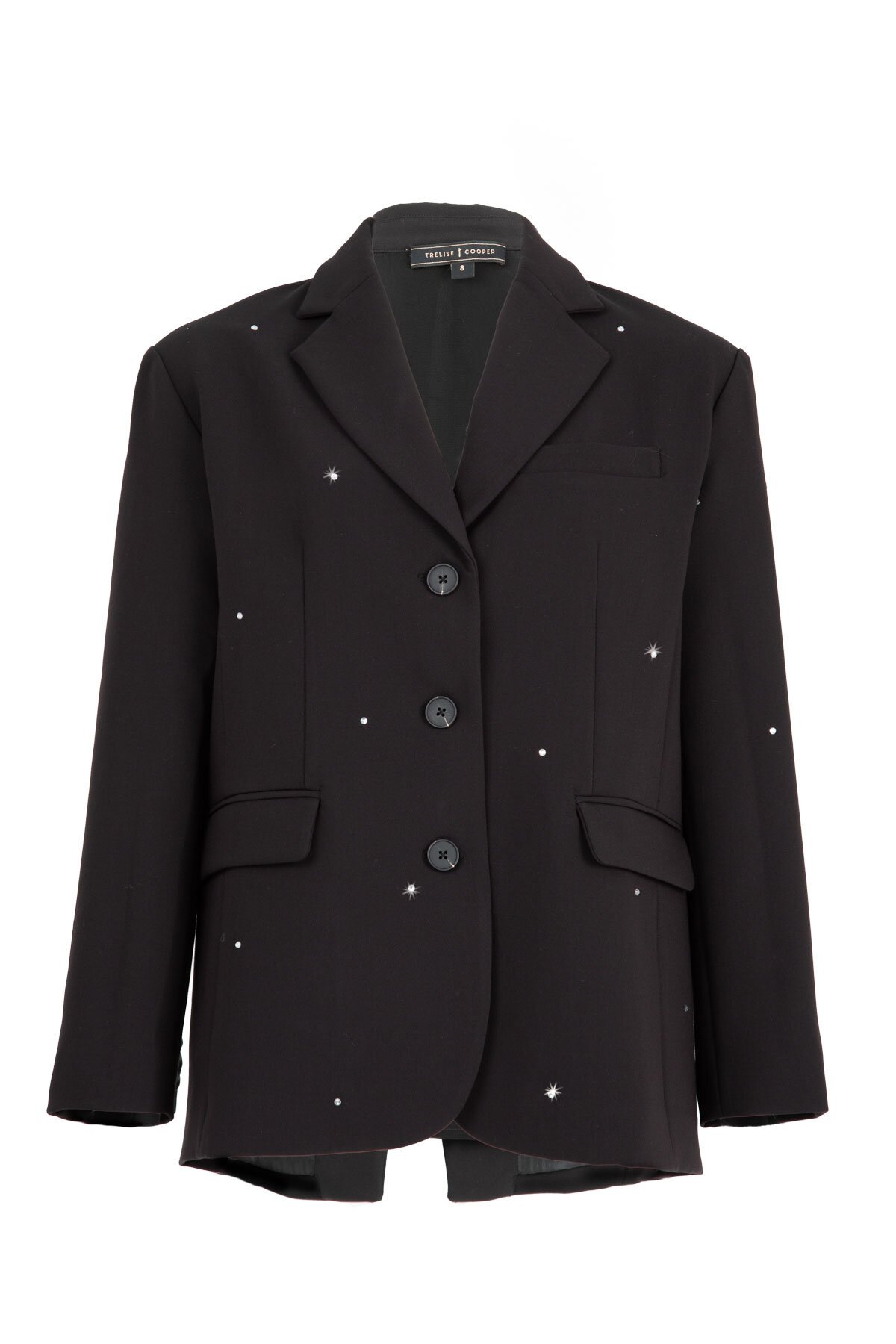 Defined by sparkling diamanté embellishment and a striking split-back detail, the Top of the Peak blazer brings a touch of after-dark glamour to classic tailoring. Cut in our Suit My Style crepe suiting, it features a single-breast button front, sharp notched lapels and front flap pockets for a polished finish. Buttoned cuffs and a softly draped yoryu underlayer add movement and sophistication, while full lining ensures a smooth, refined fit. A standout piece that elevates any wardrobe.