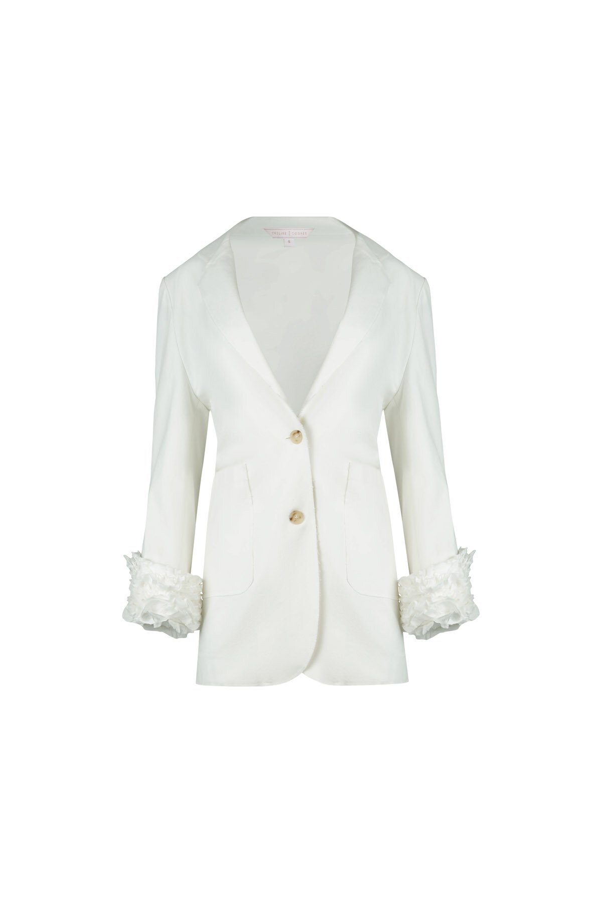 Cool, crisp, cotton canvas. The ‘TOUGH CUFF’ jacket is the perfect throw on style to pair with skirts or pants or over your summer dresses. This jacket features 'tough' raw edge, ruffled cotton cuffs. The style is a boxy fit, and features oversized front pockets. This is certain to become a wardrobe favourite. Available in Natural and White.