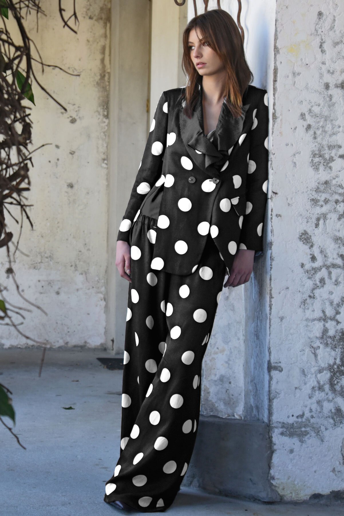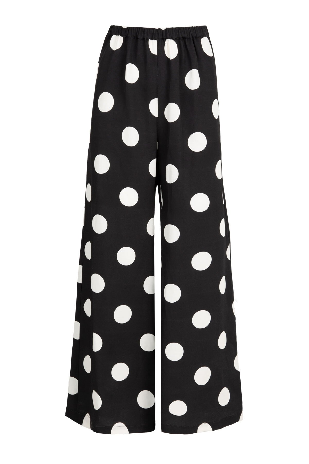Crafted in rich 'Spot Chocolate' viscose, the ‘Walk and Talk’ trouser drapes with a fluid, polished weight that moves gracefully with every step. Its wide, semi-flare leg creates a flattering, elongating silhouette, while the elasticated waistband offers all-day comfort. Side pockets provide practical ease, making this trouser a versatile wardrobe staple that balances elegance and effortless wearability.